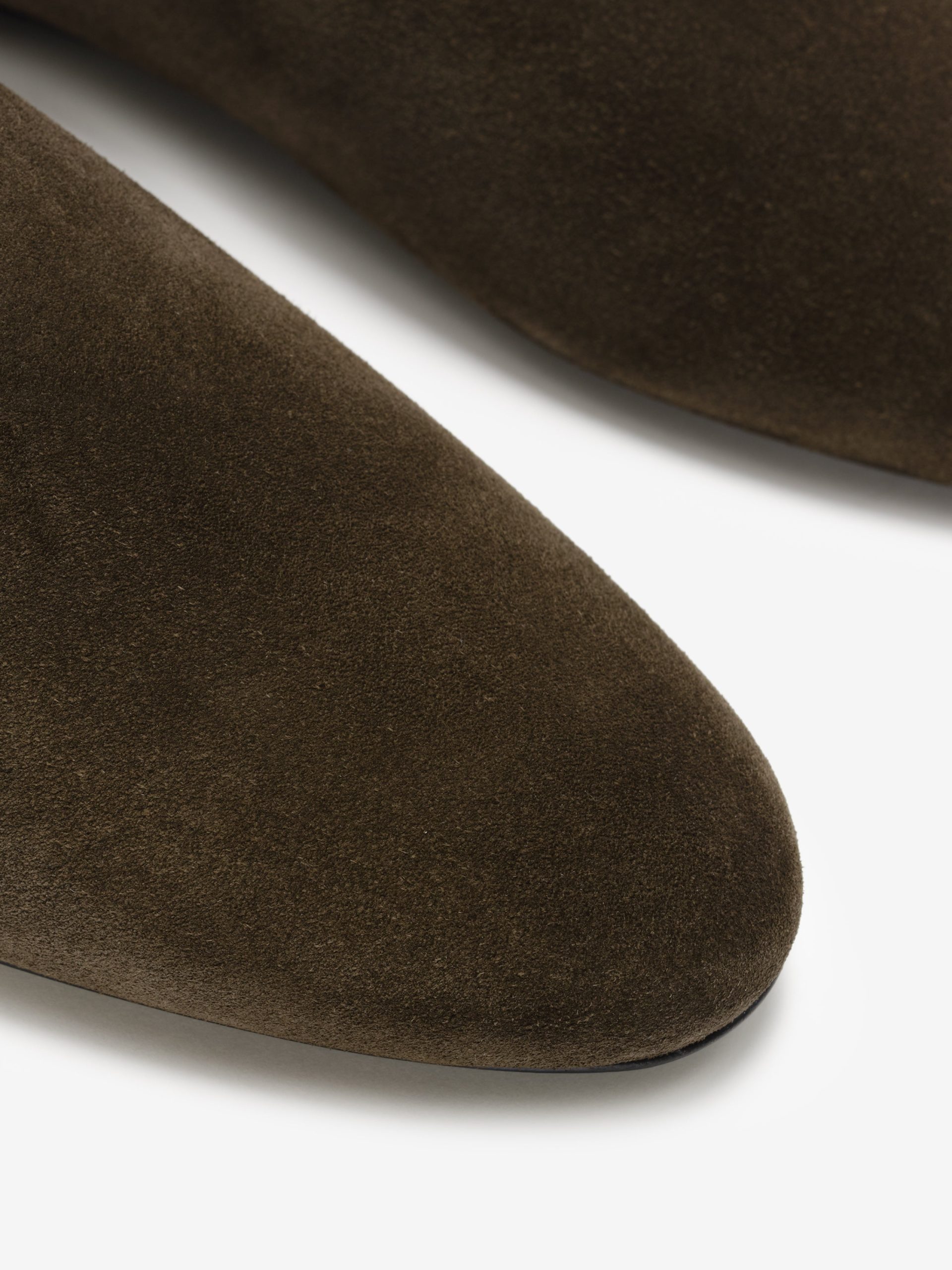 The Women’s Ballerina is a crafted in Italy from a soft suede leather with a handmade wooden sole. The slip-on style is designed with a contemporary silhouette.