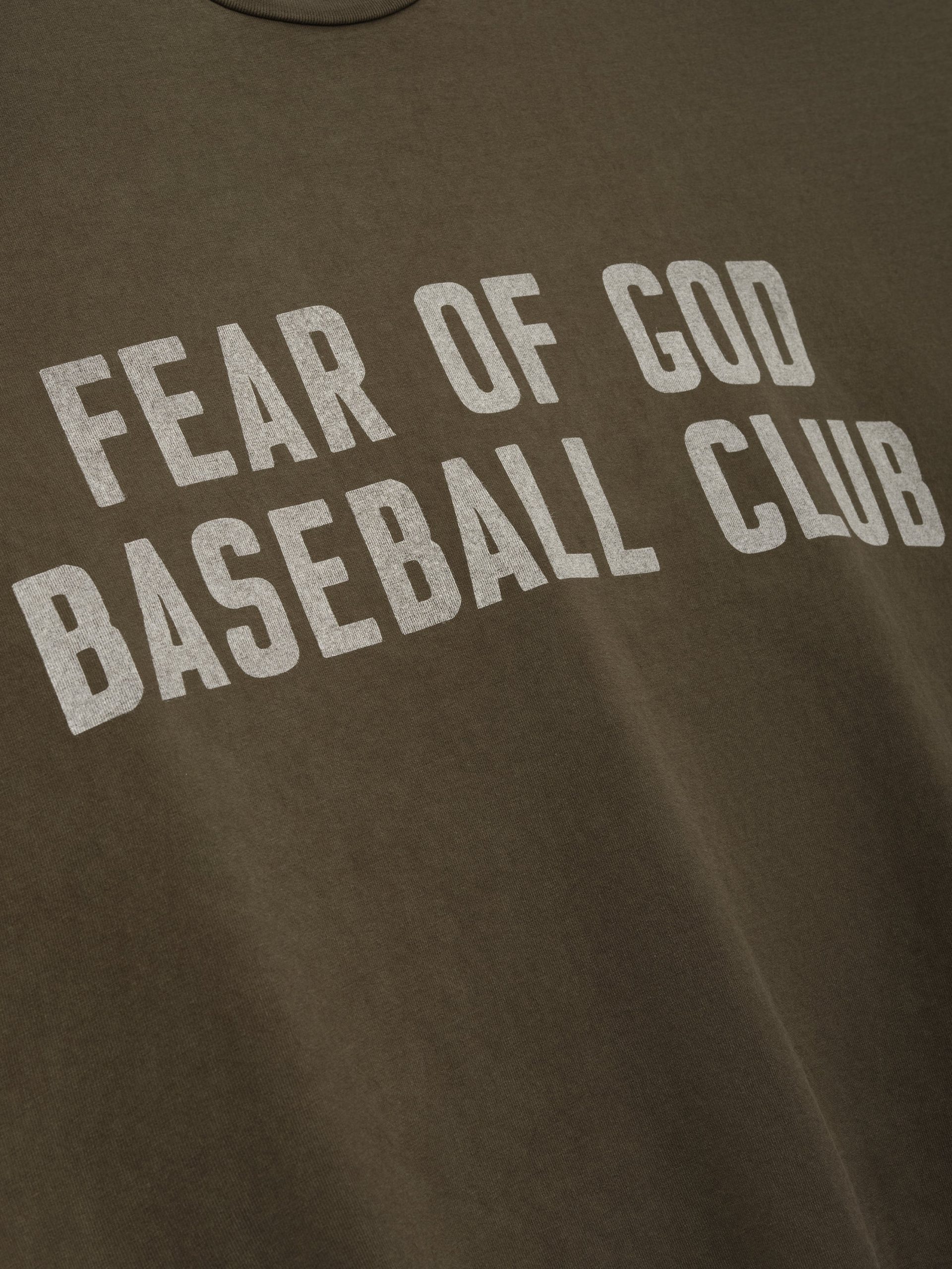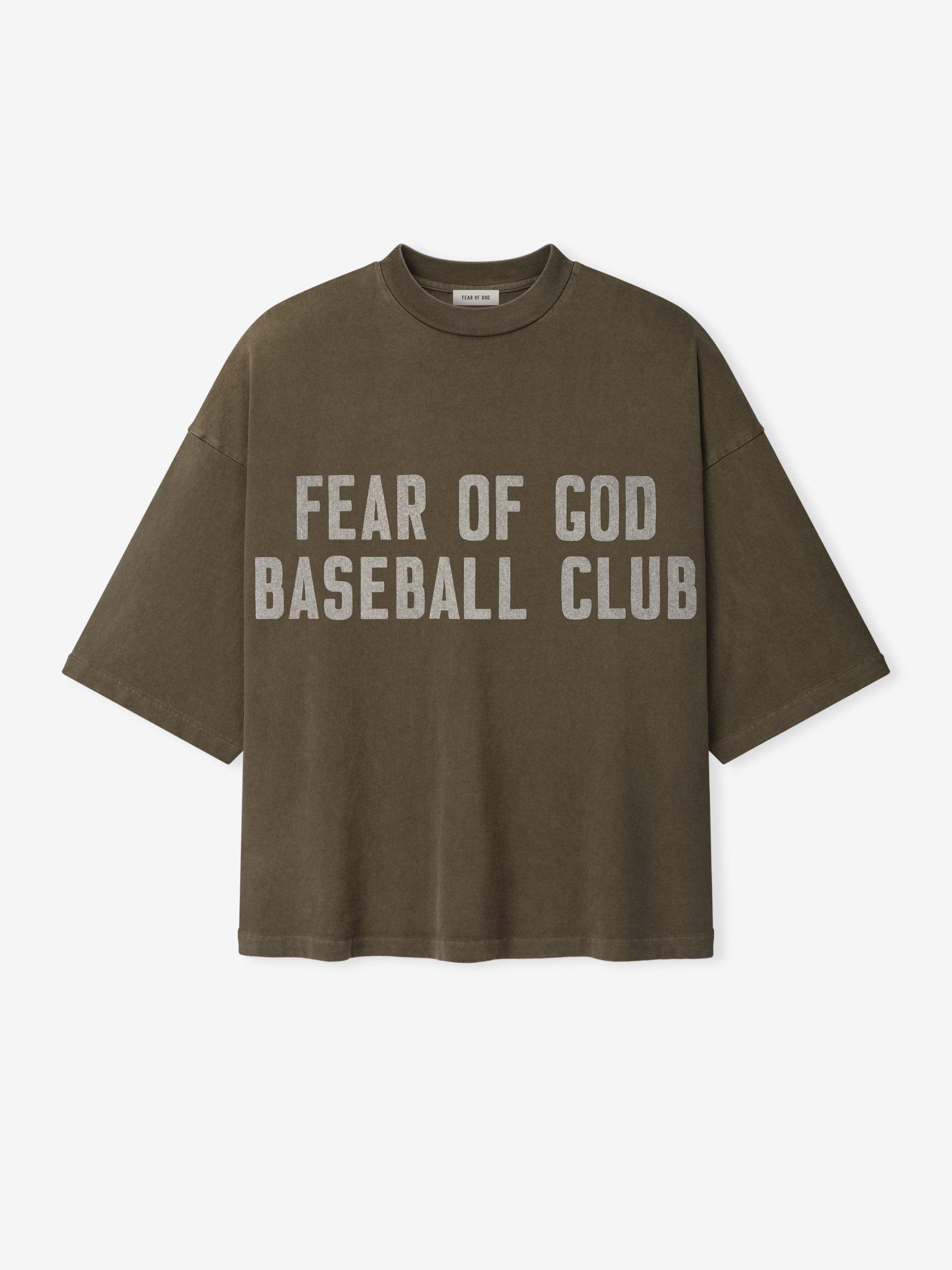 The Baseball Club Tee is crafted in the USA from 100% heavyweight cotton jersey and features a garment wash with a sun fade treatment for an authentic vintage appearance. Hand-printed graphics reference heritage athletic lockups from the past. Designed in a relaxed fit. the tee features a rib-knit crewneck. The piece is finished with the iconic Fear of God four-stitch label at the back collar.