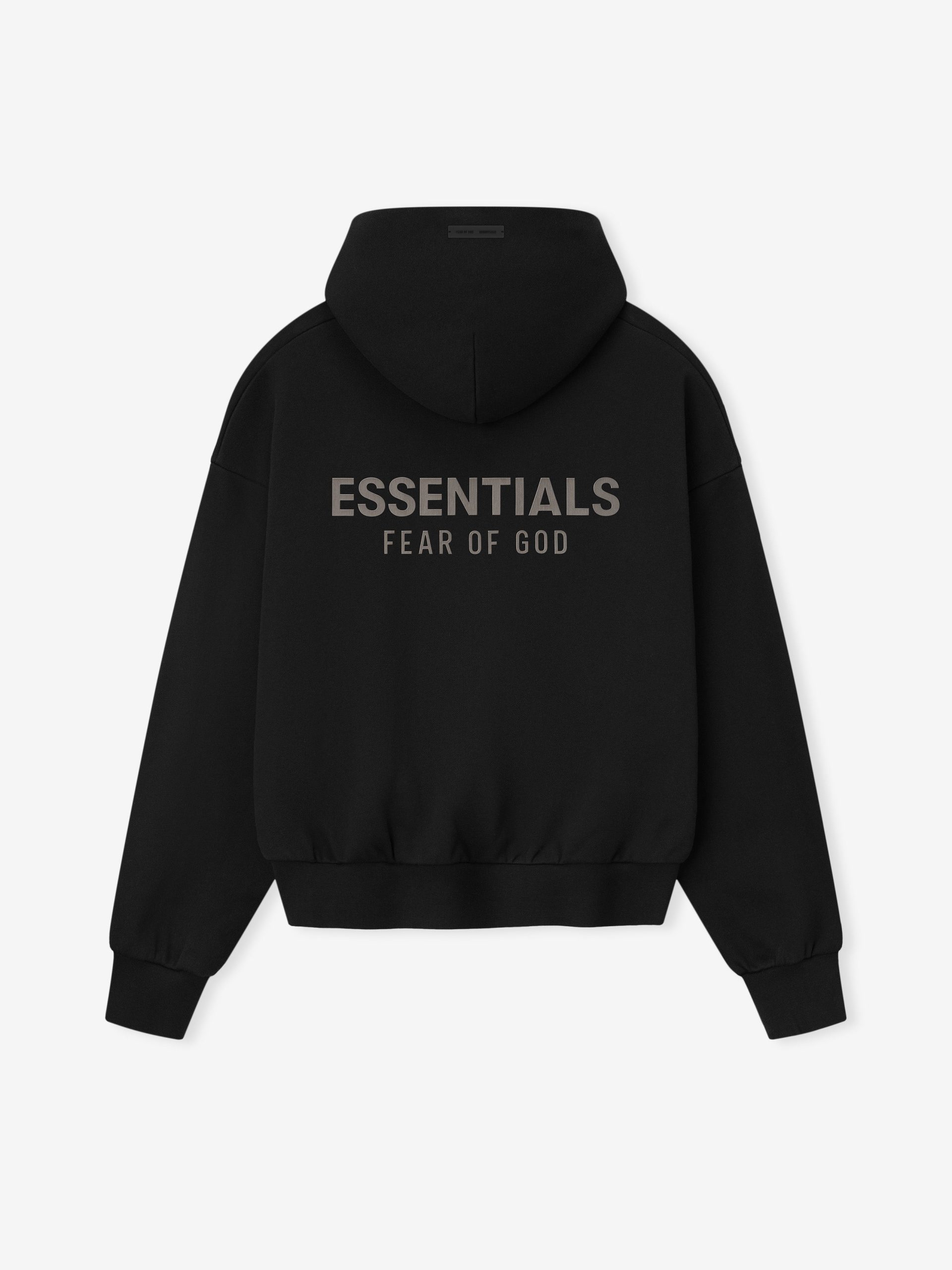 The Classic Hoodie is made from 380gsm core fleece to provide ideal comfort and structure. The hoodie features a classic fit with signature Fear of God relaxed proportions. A new Essentials Fear of God beveled metallic logo is branded across the back. Details include a double-layer hoodie. kangaroo pocket. rib-knit cuffs and waist-hem. A Fear of God Essentials rubberized label is stitched on the hood and sleeve.