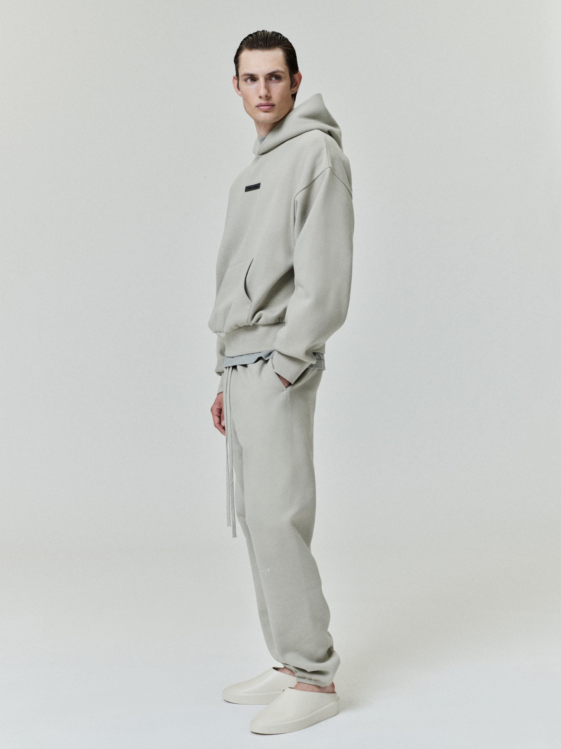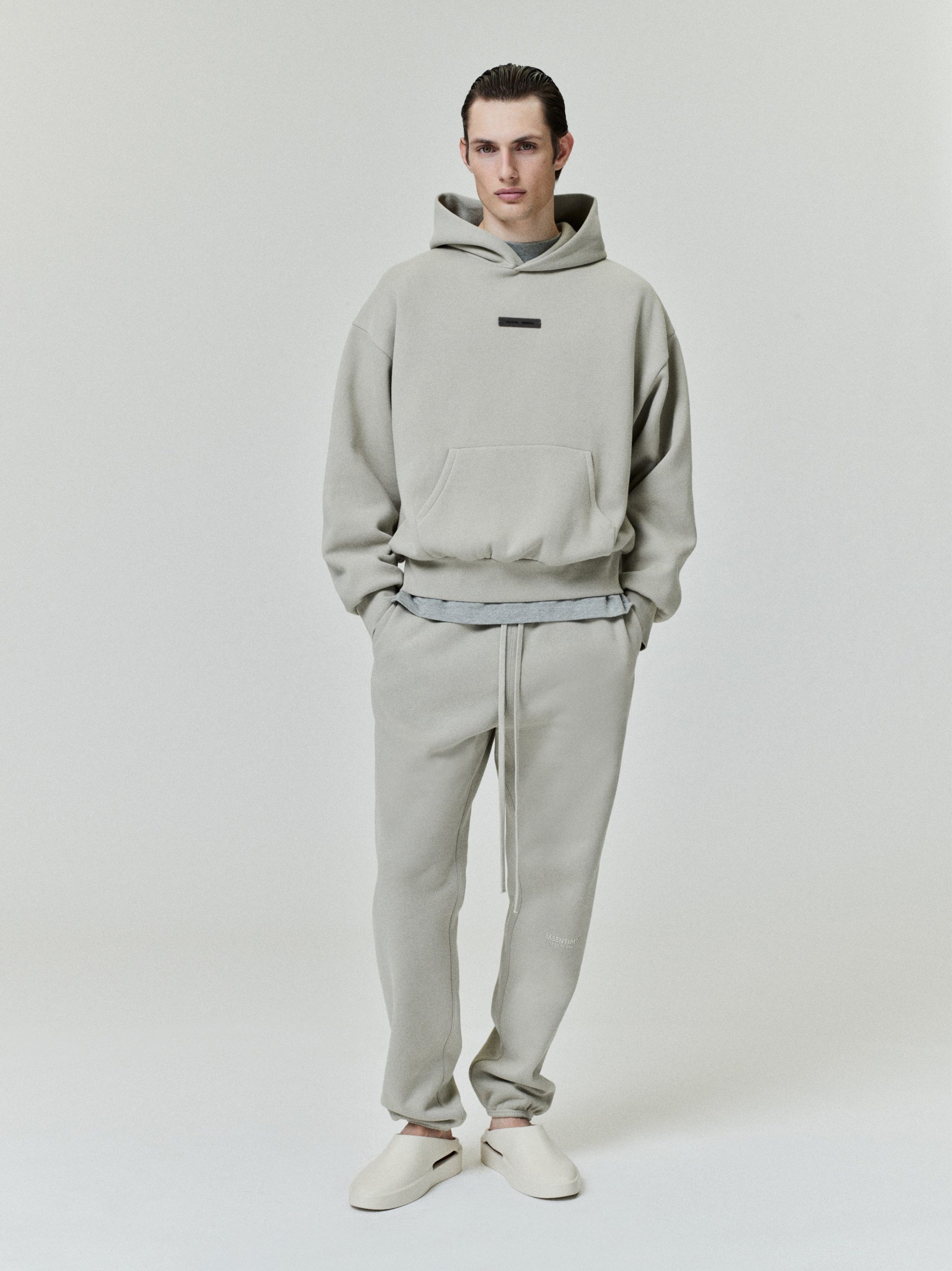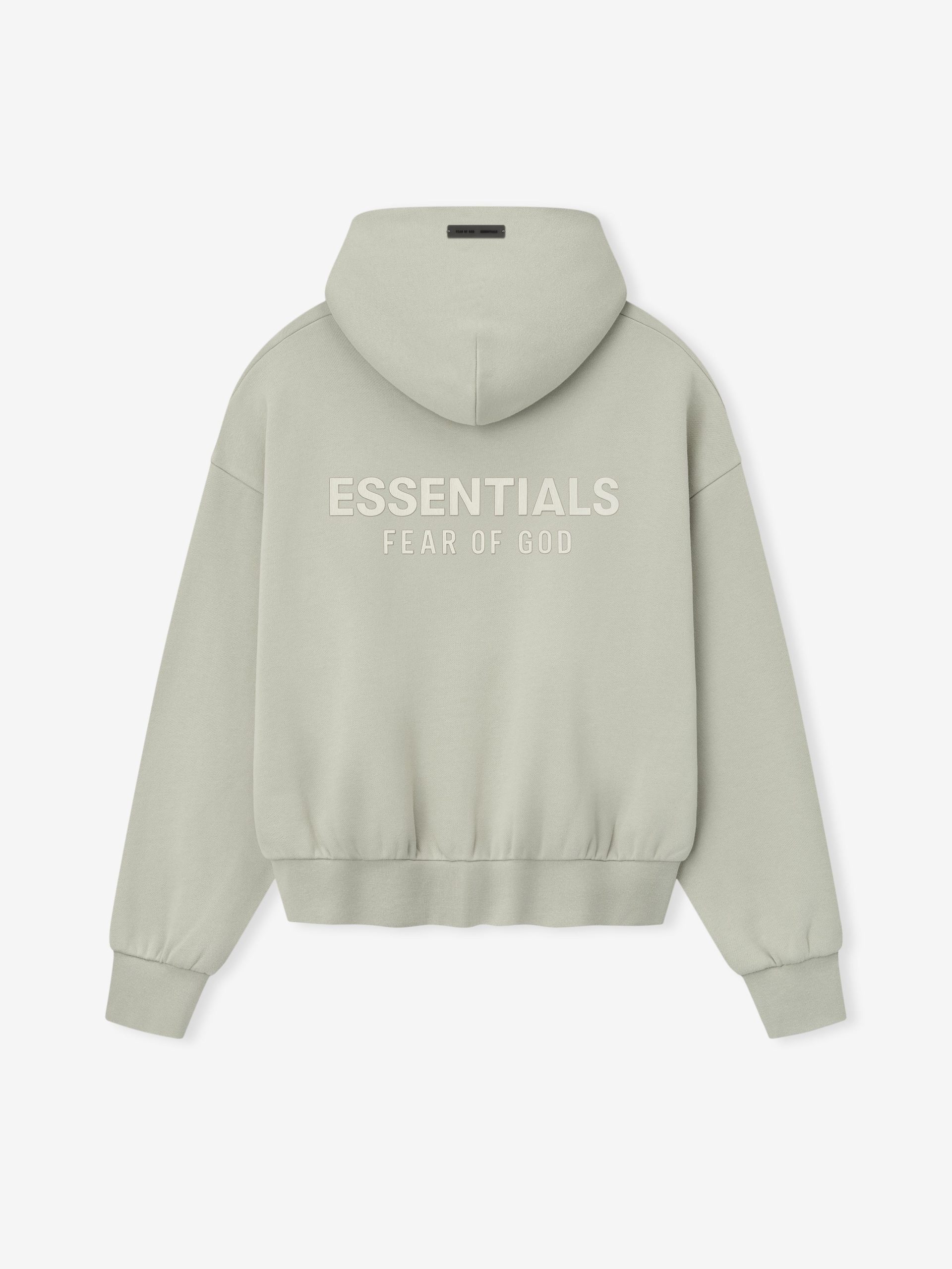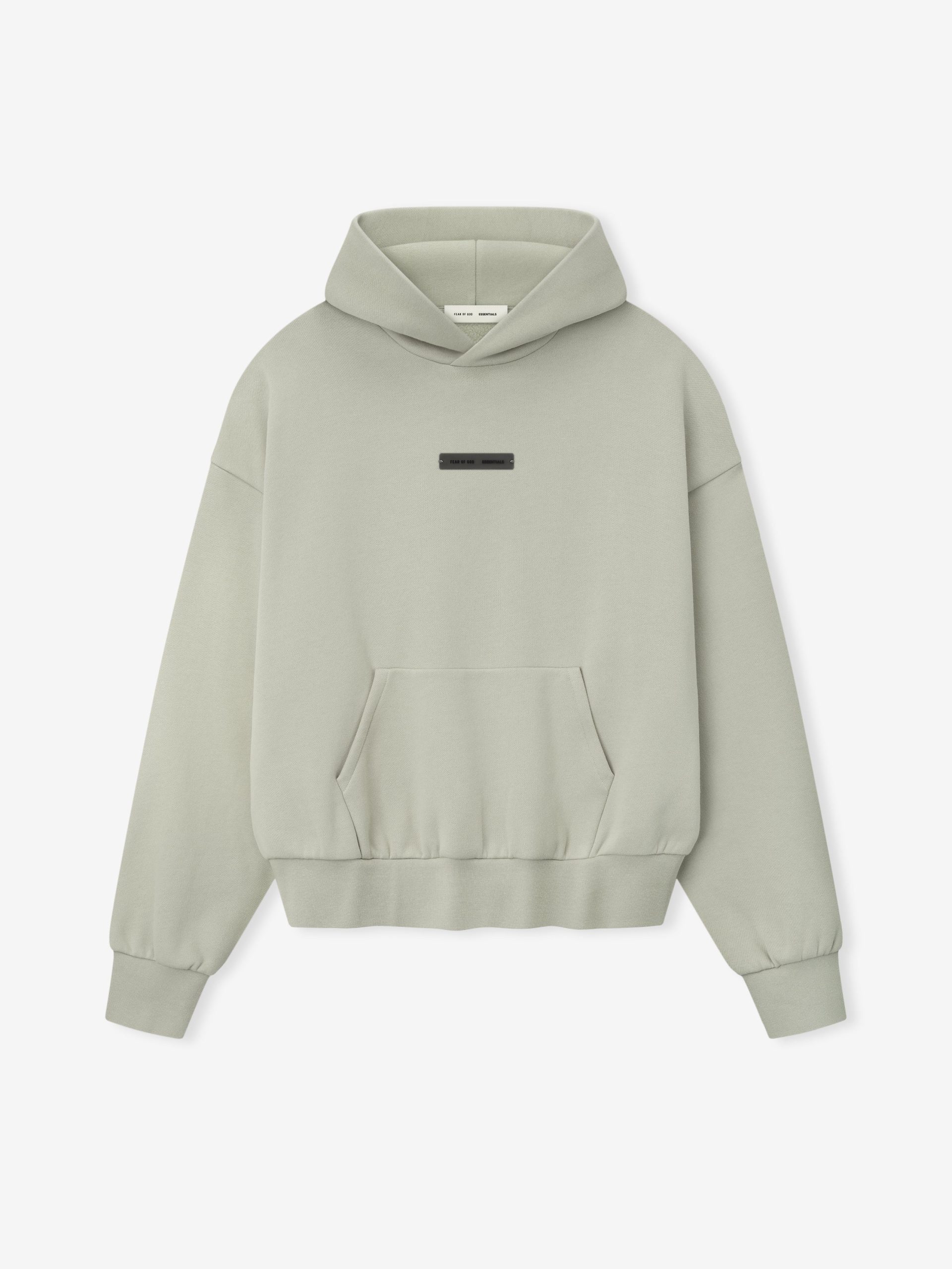 The Classic Hoodie is made from 380gsm core fleece to provide ideal comfort and structure. The hoodie features a classic fit with signature Fear of God relaxed proportions. A new Essentials Fear of God beveled metallic logo is branded across the back. Details include a double-layer hoodie. kangaroo pocket. rib-knit cuffs and waist-hem. A Fear of God Essentials rubberized label is stitched on the hood and sleeve.
