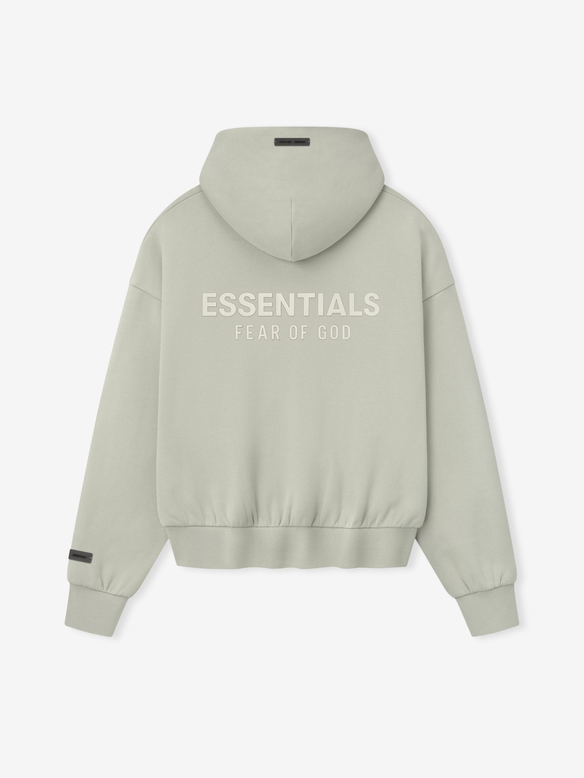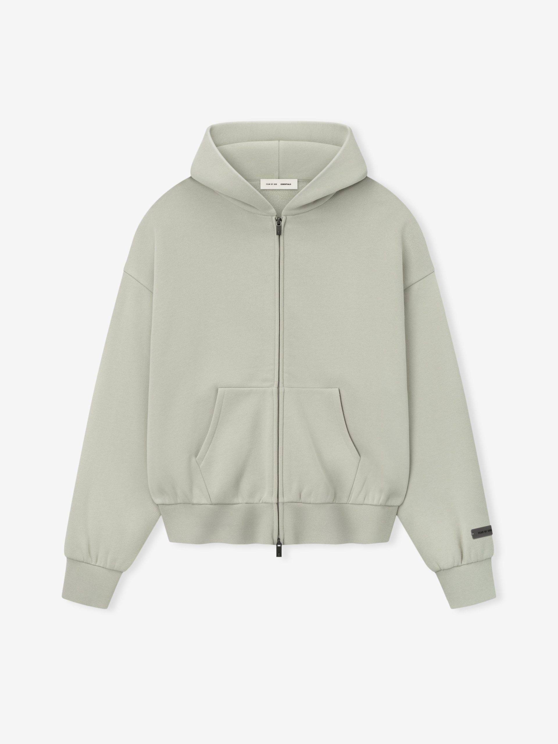 The Classic Zip-Up Hoodie is made from 380gsm core fleece to provide ideal comfort and structure. The zip-up hoodie style features a classic fit with signature Fear of God relaxed proportions. A new beveled metallic Essentials Fear of God logo is branded across the back. Details include a double-layer hoodie. rib-knit cuffs. waist-hem. and a kangaroo pocket. A Fear of God Essentials rubberized label is stitched on the hood and sleeve.