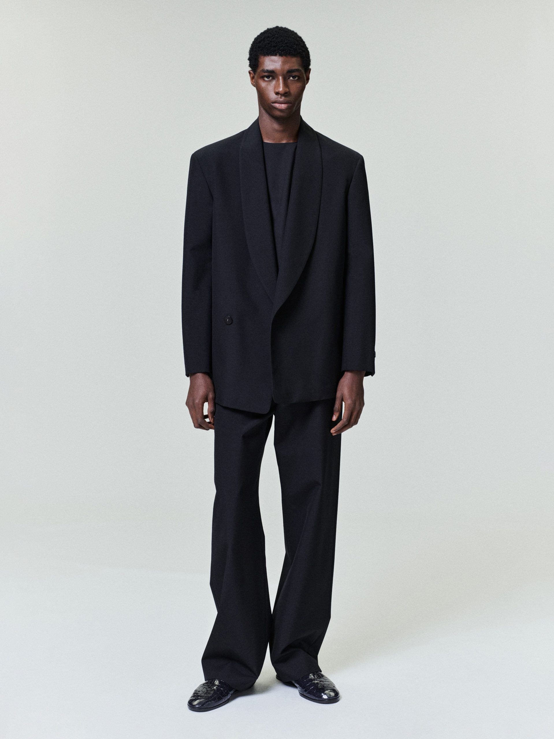 Be the first to review “Double-Breasted Wool Poplin Shawl Collar Jacket”