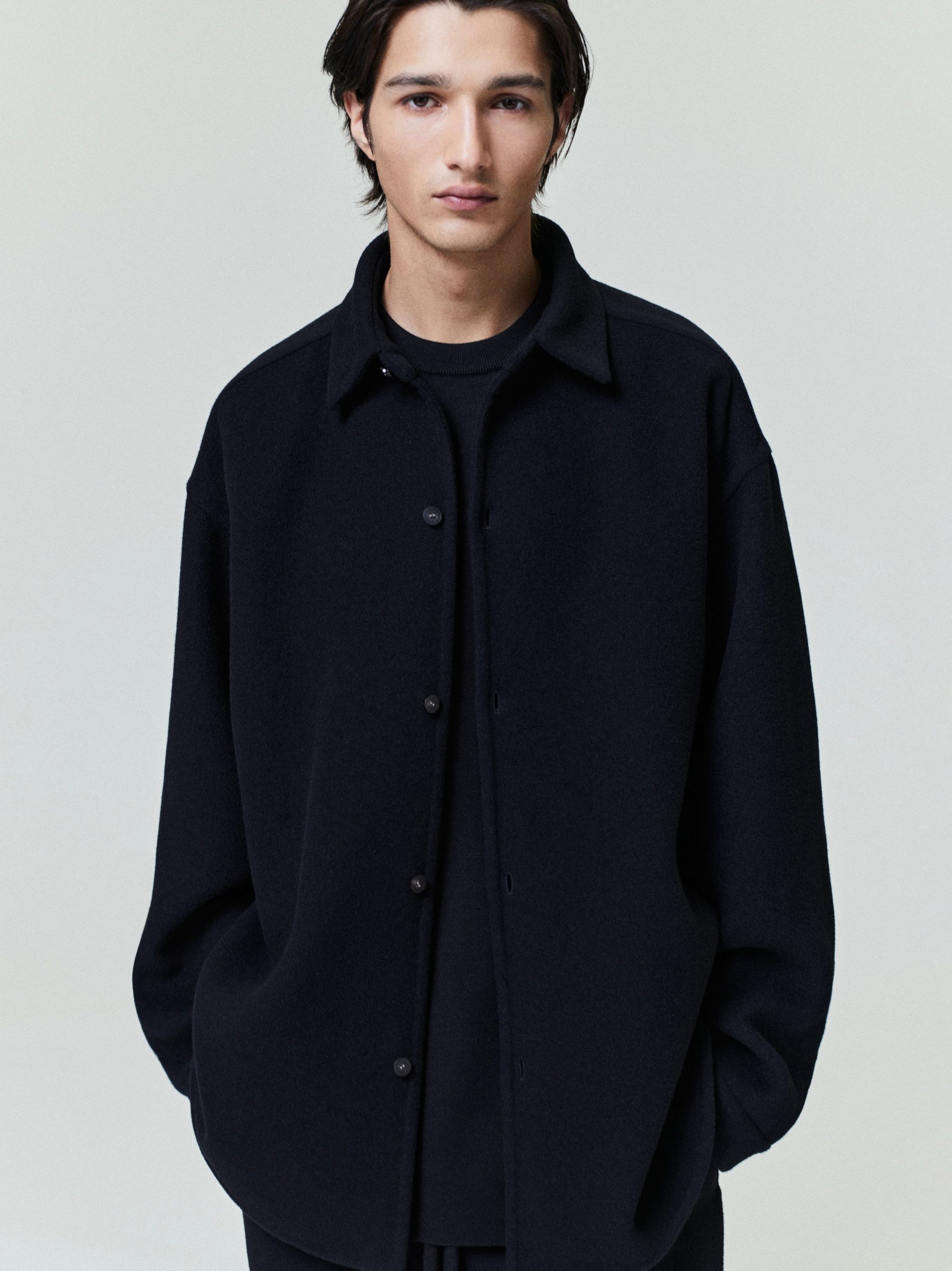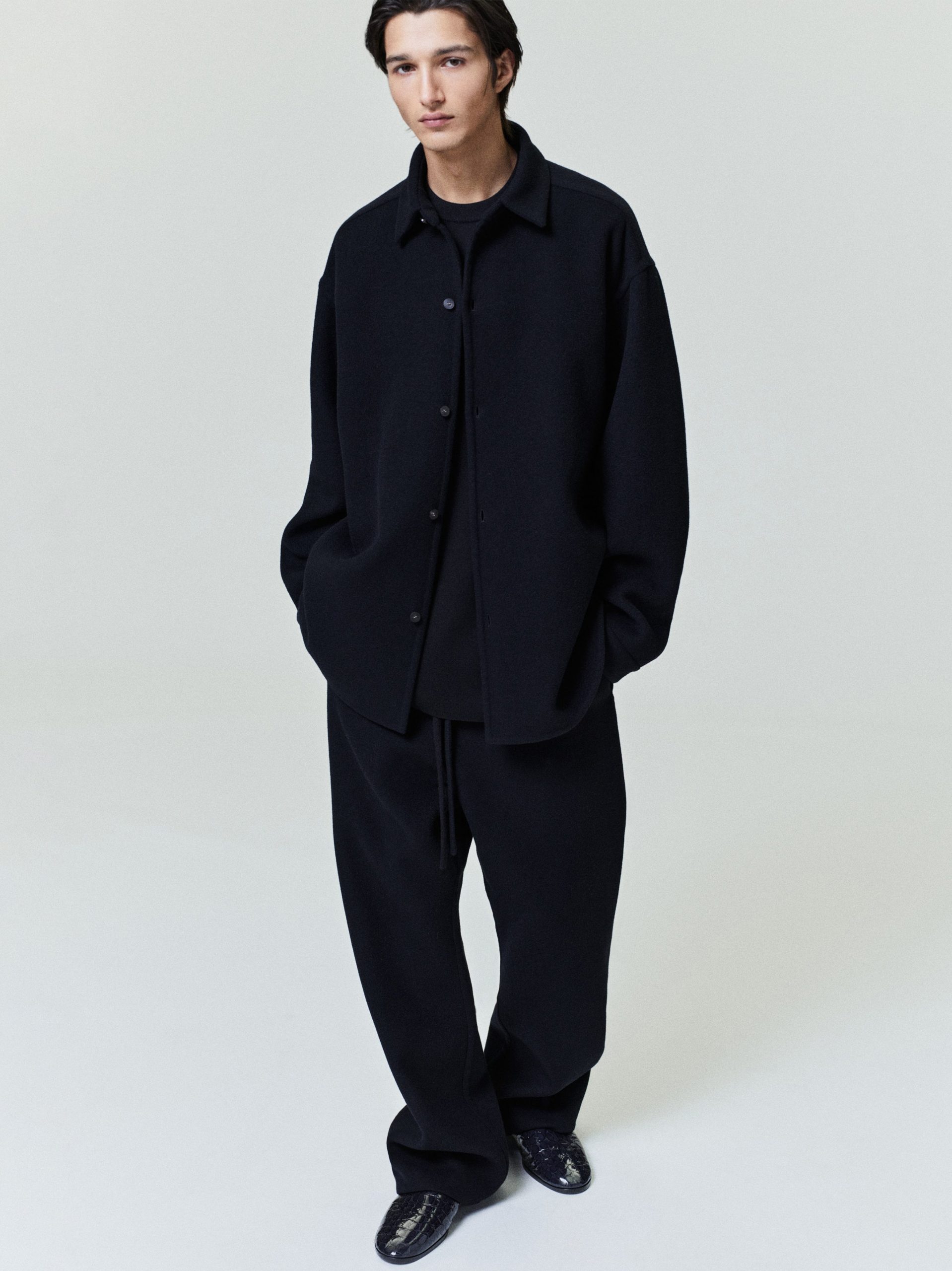 The Relaxed Shirt is tailored from a double-face wool–cashmere blend with a compact structure and a soft. luxurious hand. Designed as a relaxed overshirt silhouette. it features a button-front closure and a curved shirt tail hem. The piece is finished with the iconic Fear of God four-stitch label at the center back.