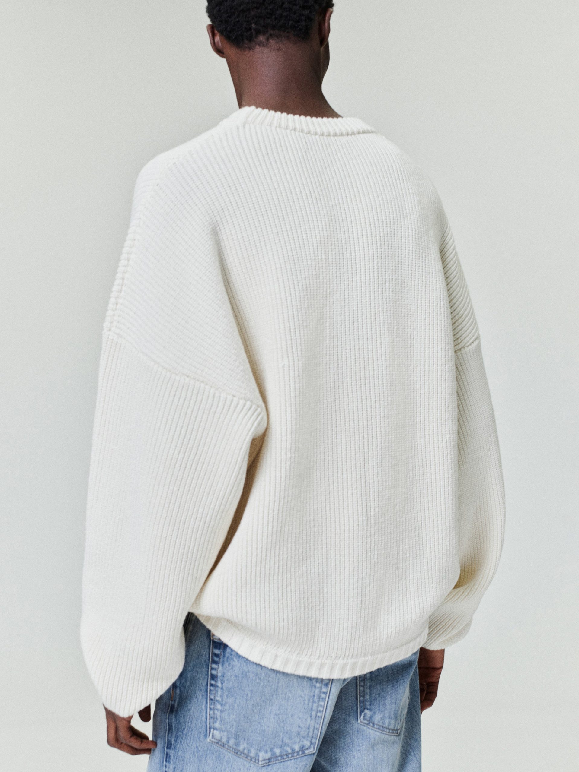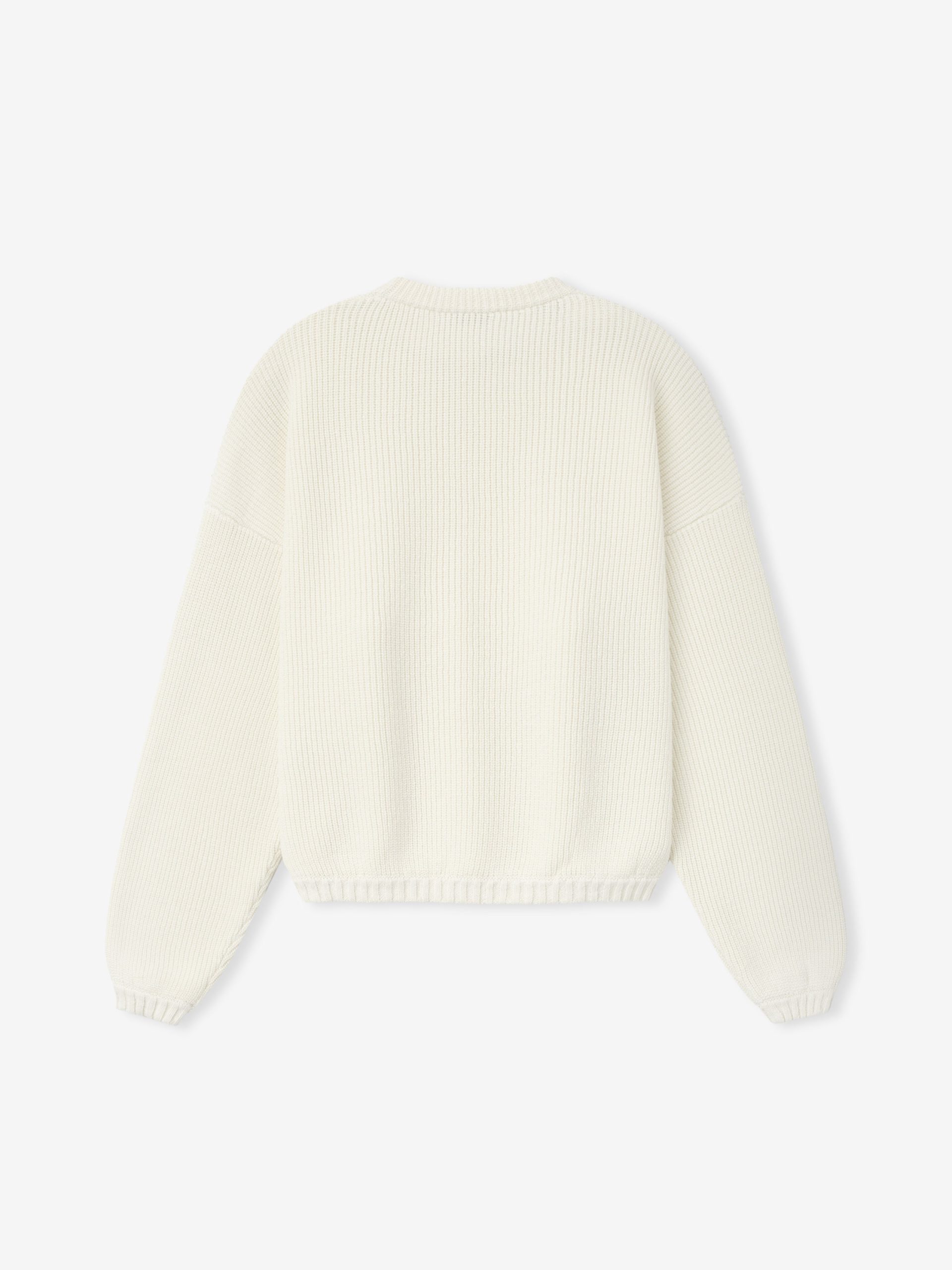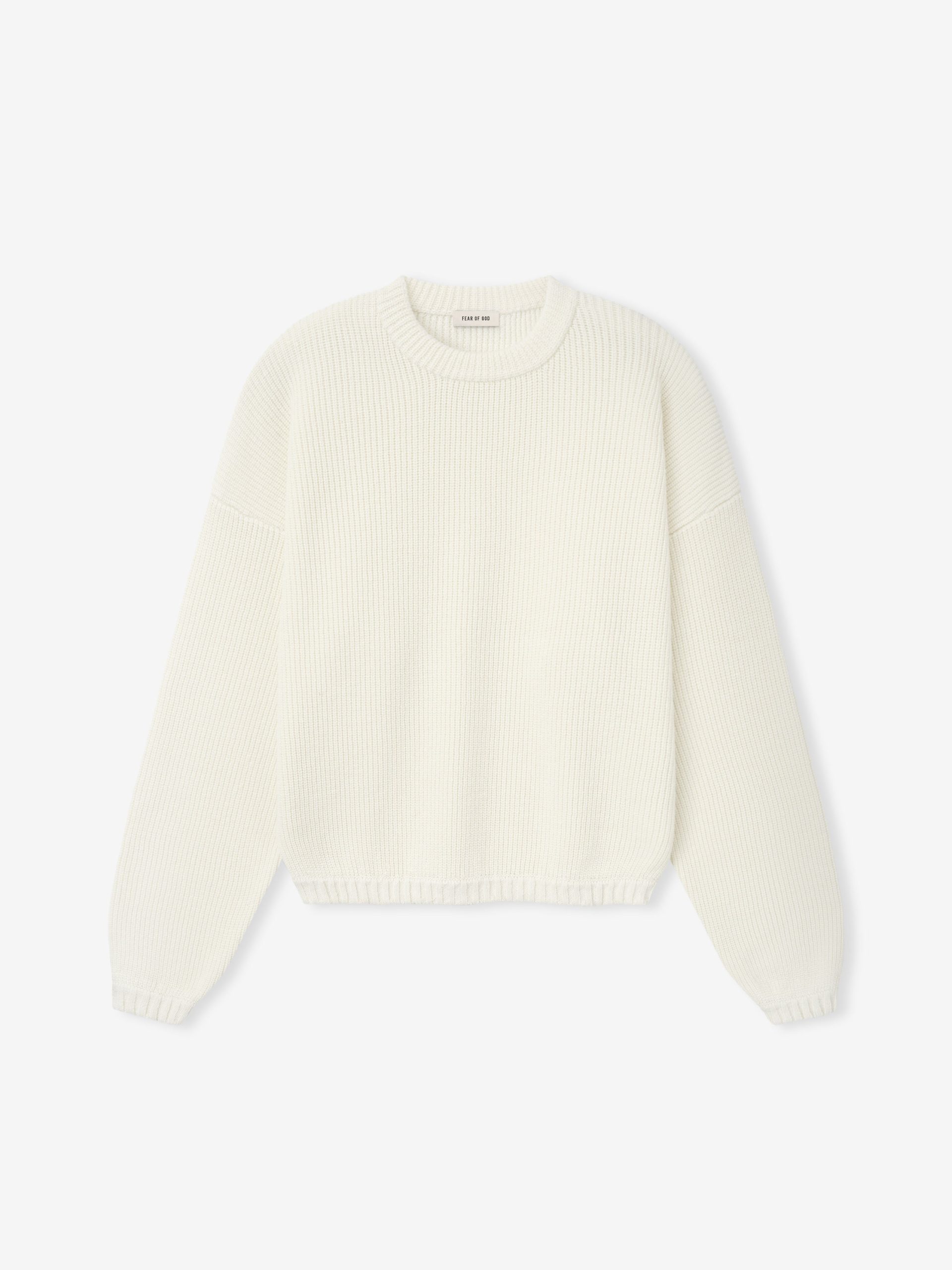 The Crewneck Sweater is crafted in Italy from linen-wool–cotton blend in a cardigan stitch double knit. Designed with a relaxed fit. the long-sleeve sweater is finished with ribbed collar. cuffs and hem for structure.