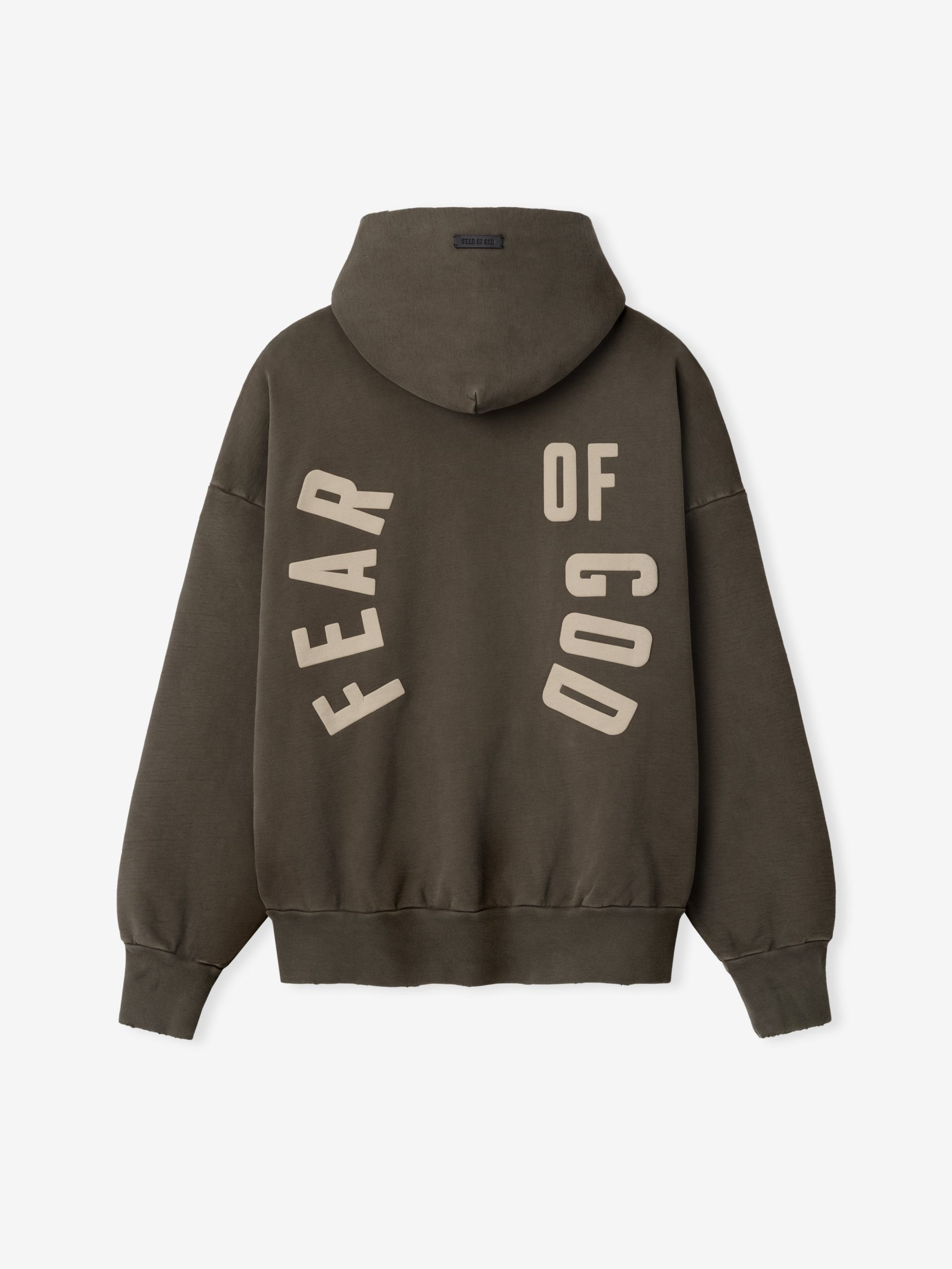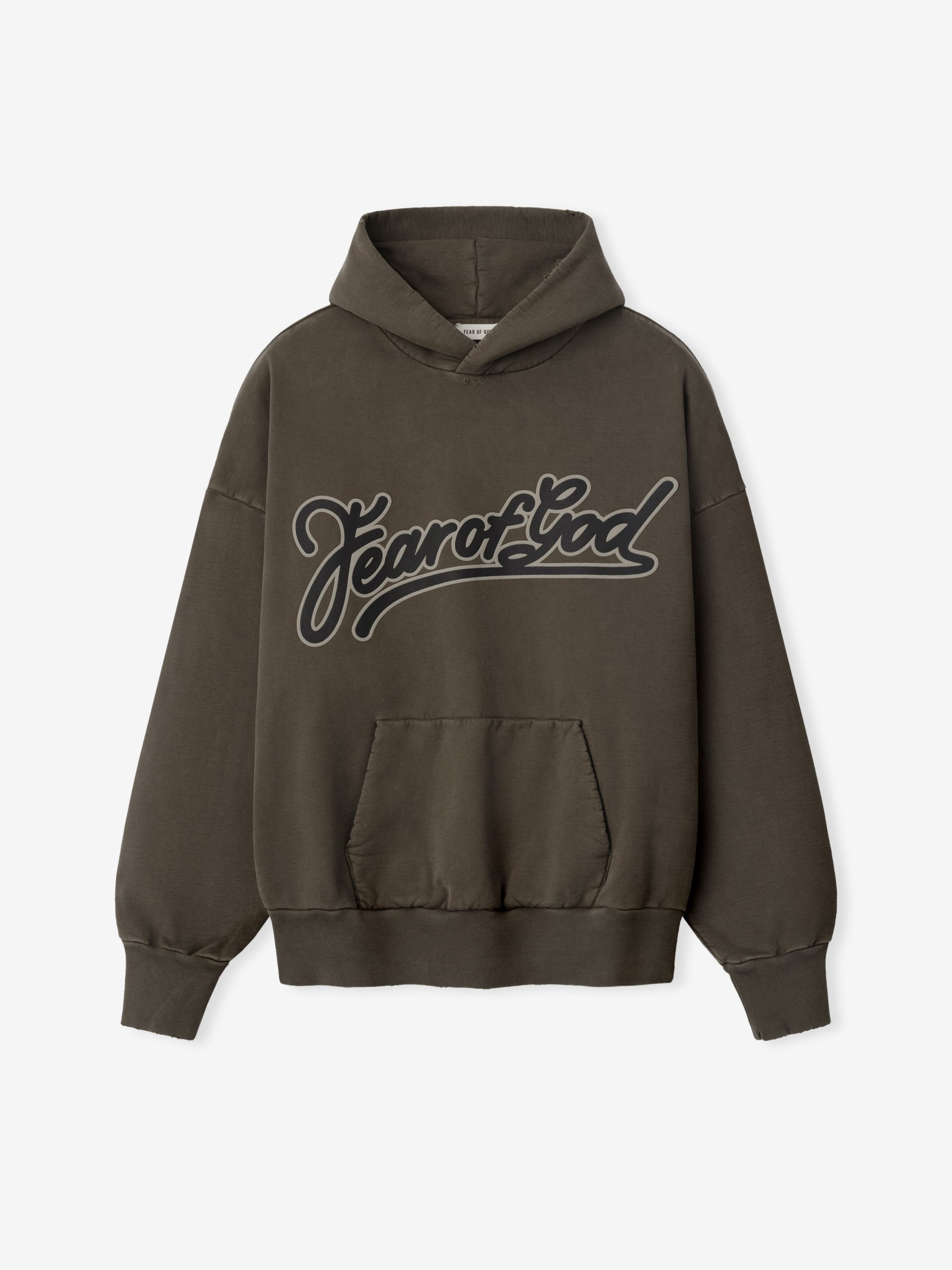The Fear of God Classic Hoodie is crafted in the USA from 100% heavyweight cotton fleece and finished with a garment wash and sunfade treatment for an authentic vintage look. Hand-printed graphics reference heritage athletic lockups from the past. Designed in a classic fit. the hoodie features a kangaroo pocket with ribbed cuffs and waist hem. The piece is finished with the iconic Fear of God four-stitch label at the hood.