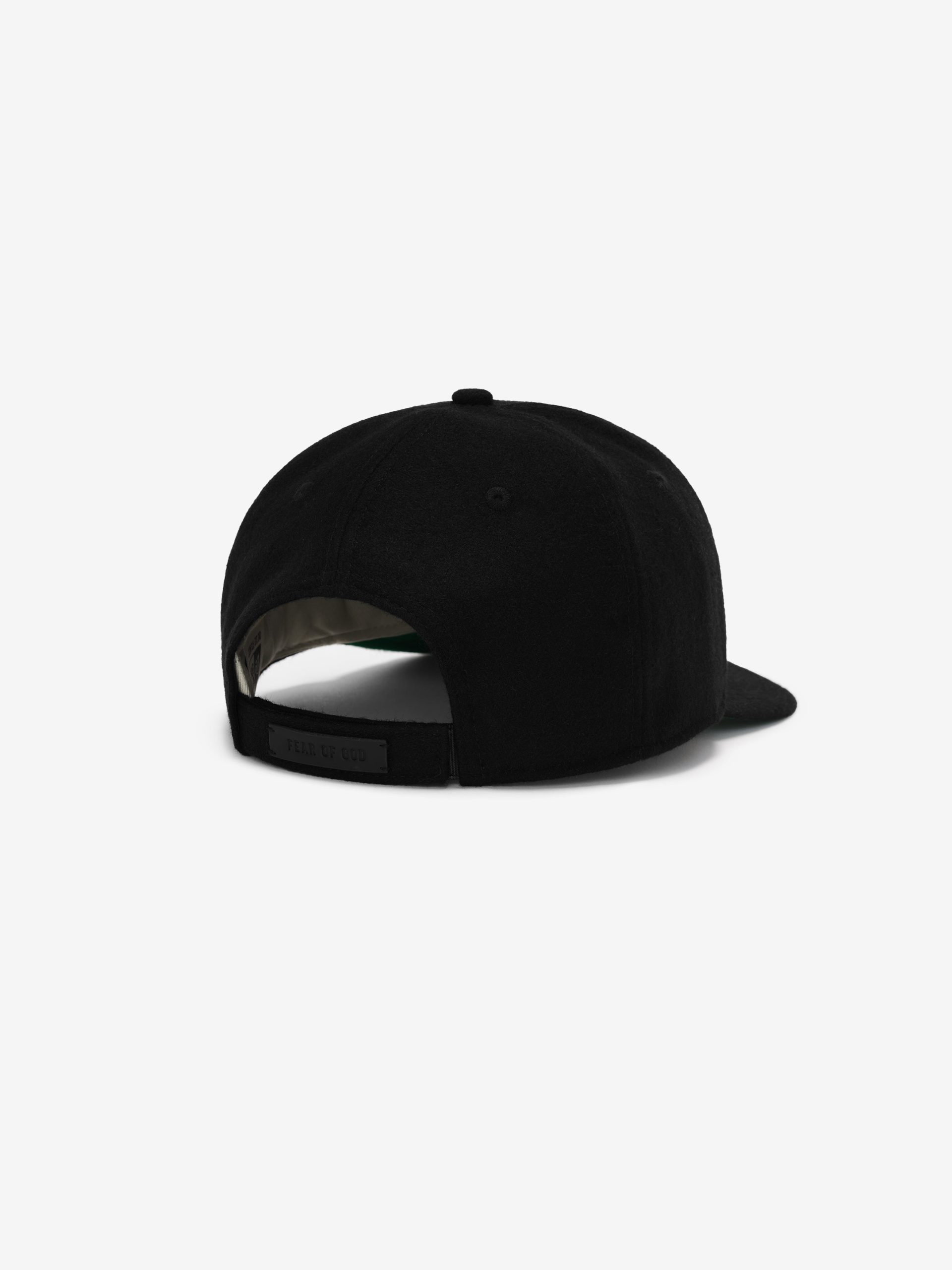The Fear of God Essentials FG Monarchs 9FORTY adjustable cap features the Kansas City Monarchs color fabrication with a felt FG logo at the front panels and a Fear of God label on the adjustable strap at the rear.