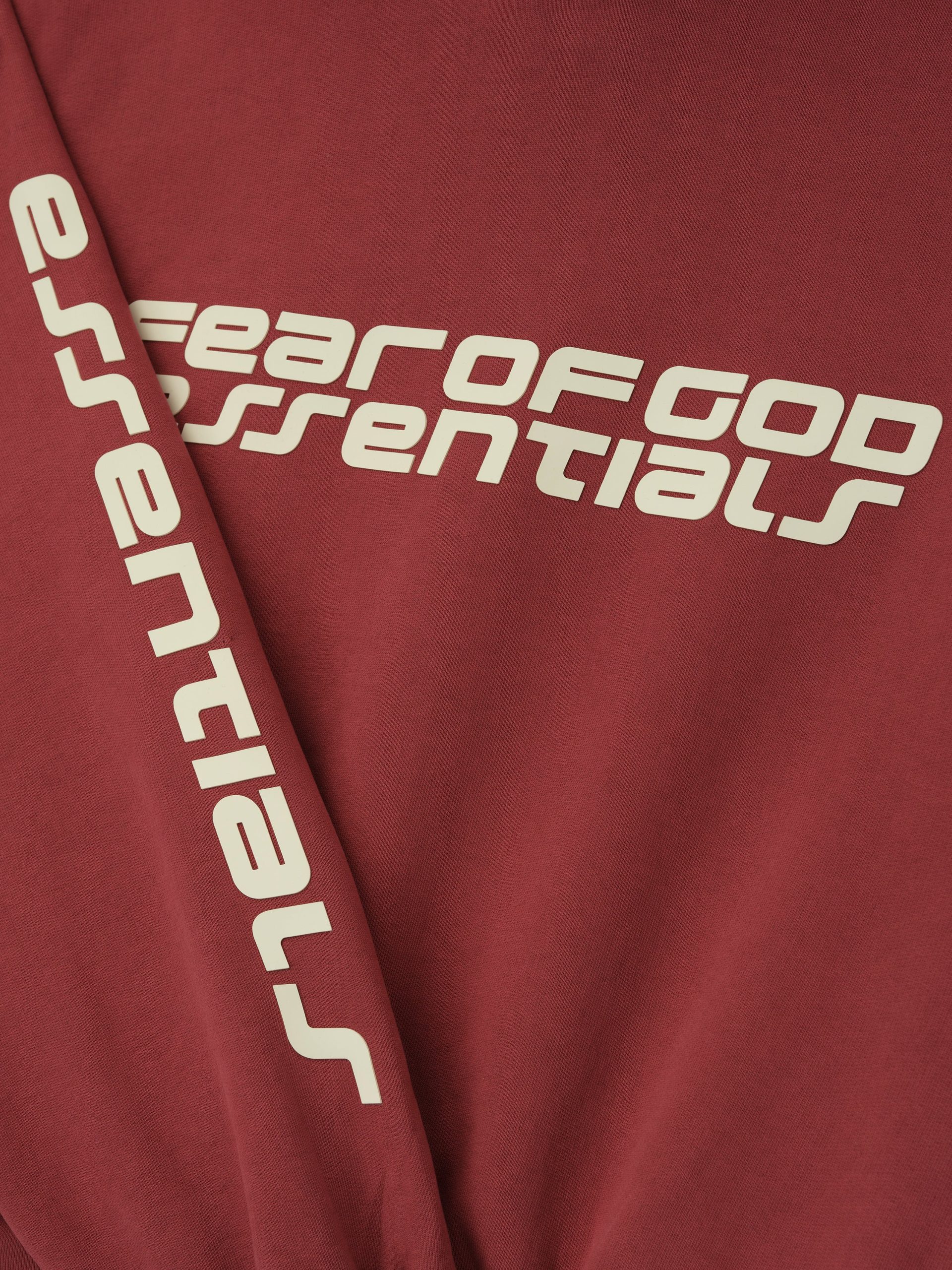 The Kids Classic Hoodie is made from core fleece to provide ideal comfort and structure. The hoodie features a classic fit with signature Fear of God relaxed proportions. An embossed Essentials Fear of God logo is branded across the front. Details include a double-layer hoodie. side pockets. rib-knit cuffs and waist-hem. A Fear of God Essentials rubberized label is stitched on the hood.