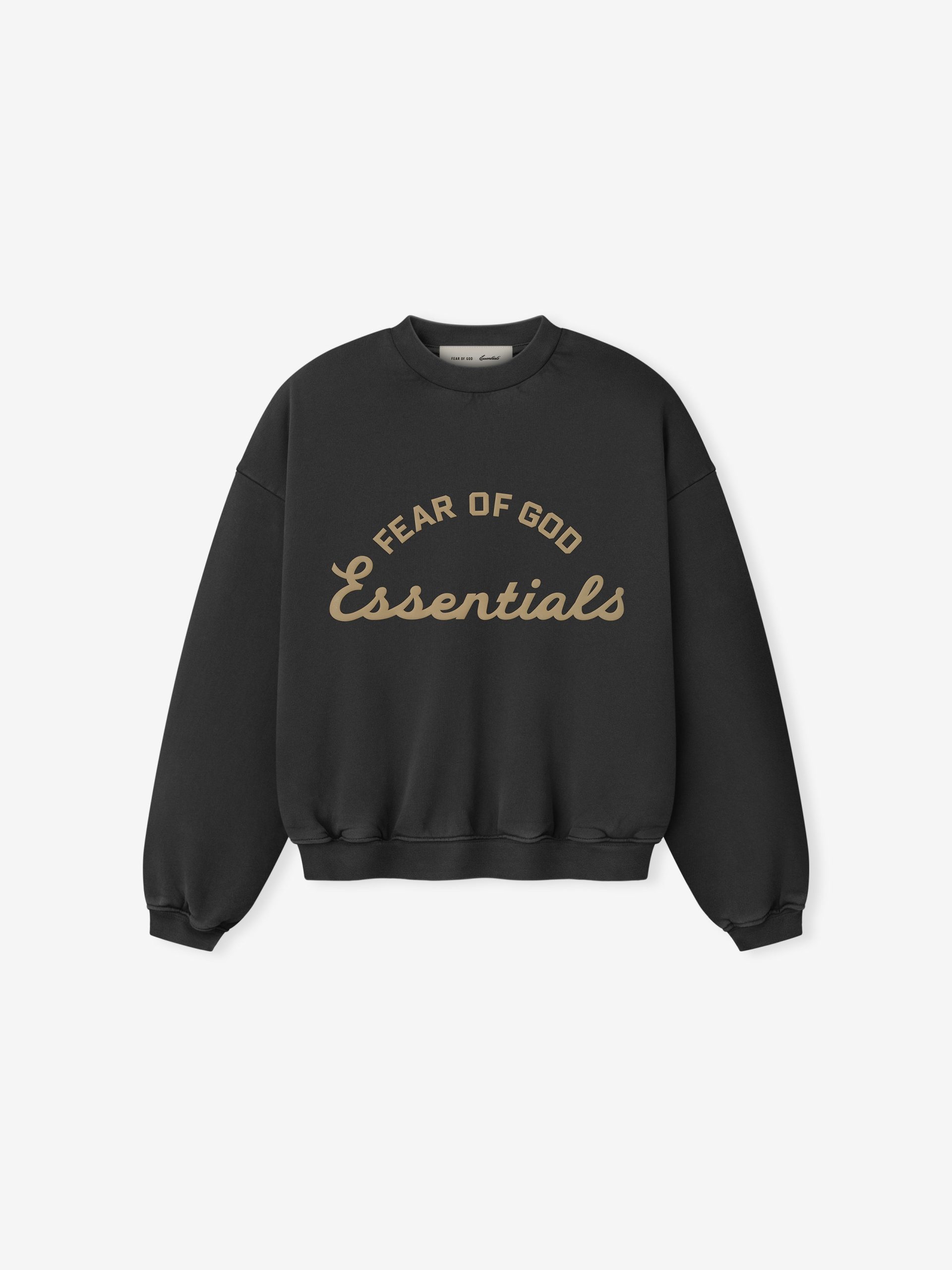 The Kid’s Training 90s Crewneck Sweatshirt is crafted from cotton 390GSM fleece and given a pigment dye for an authentic vintage feel. A PUFF-PRINT Fear of God Essentials training logo is branded on the front. Details include a rib-knit collar. cuffs. waist-hem. and Essentials signature label at the back collar.