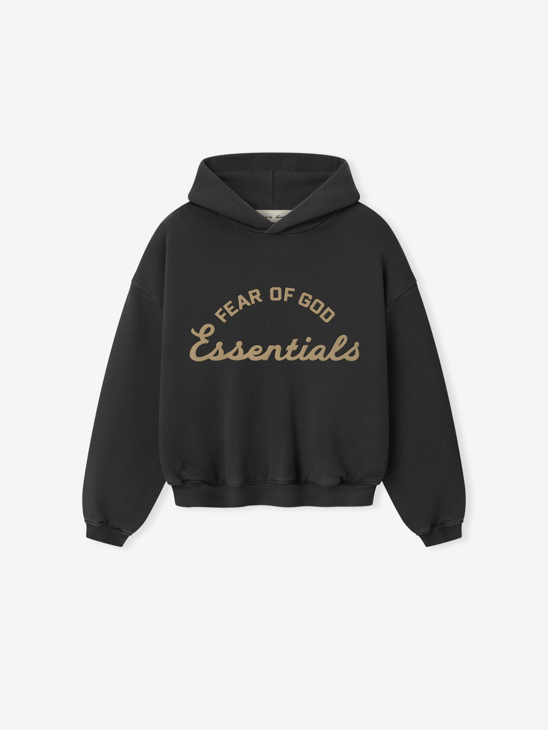 The Kid’s Training 90s Hoodie is crafted from 390GSM cotton fleece and given a pigment dye for an authentic vintage feel. A puff-printed Fear of God Essentials training logo is branded on the front. Details include a double-layer hoodie. side pockets. rib-knit cuffs. waist-hem. and Essentials label on the hood edge