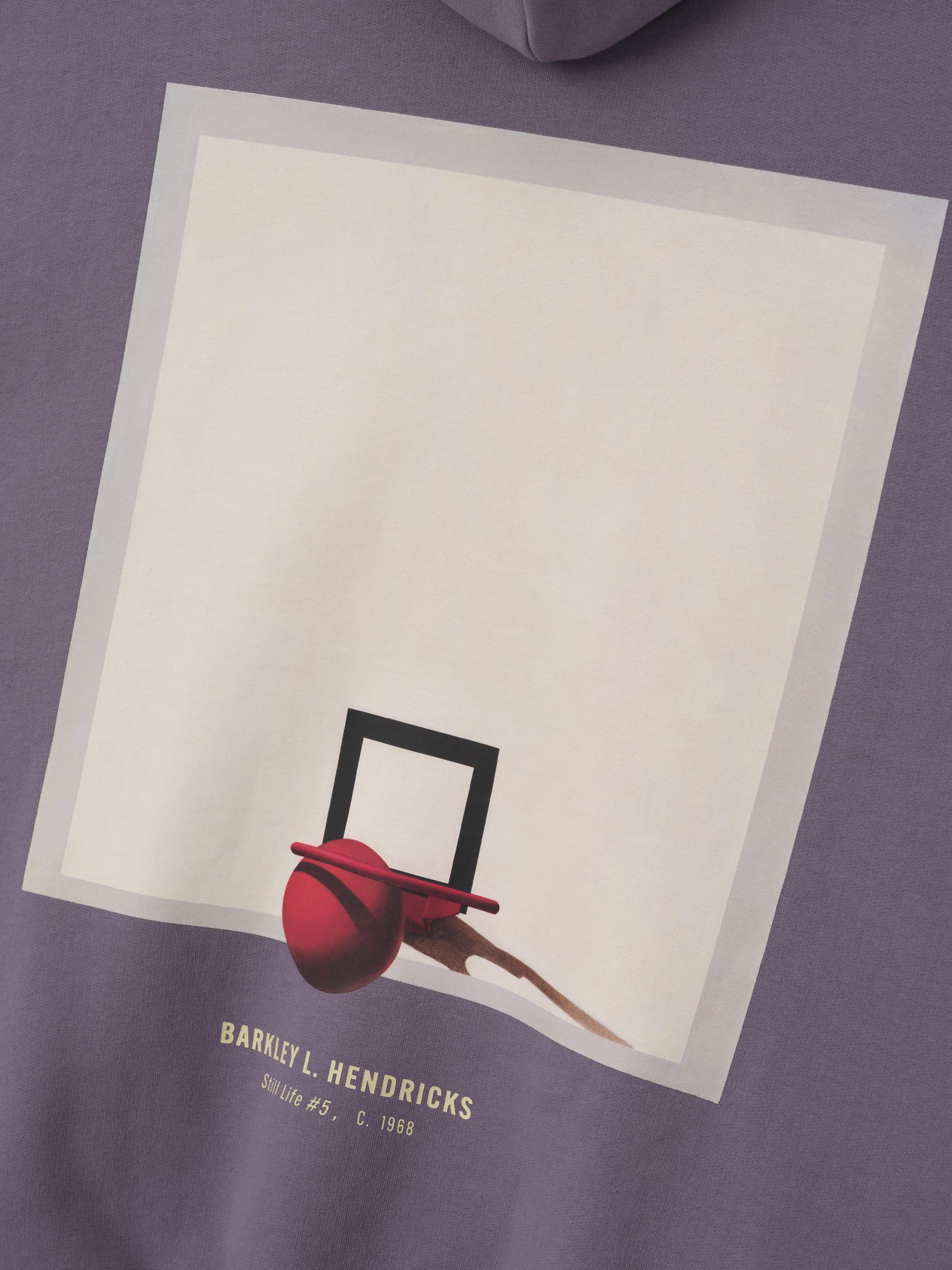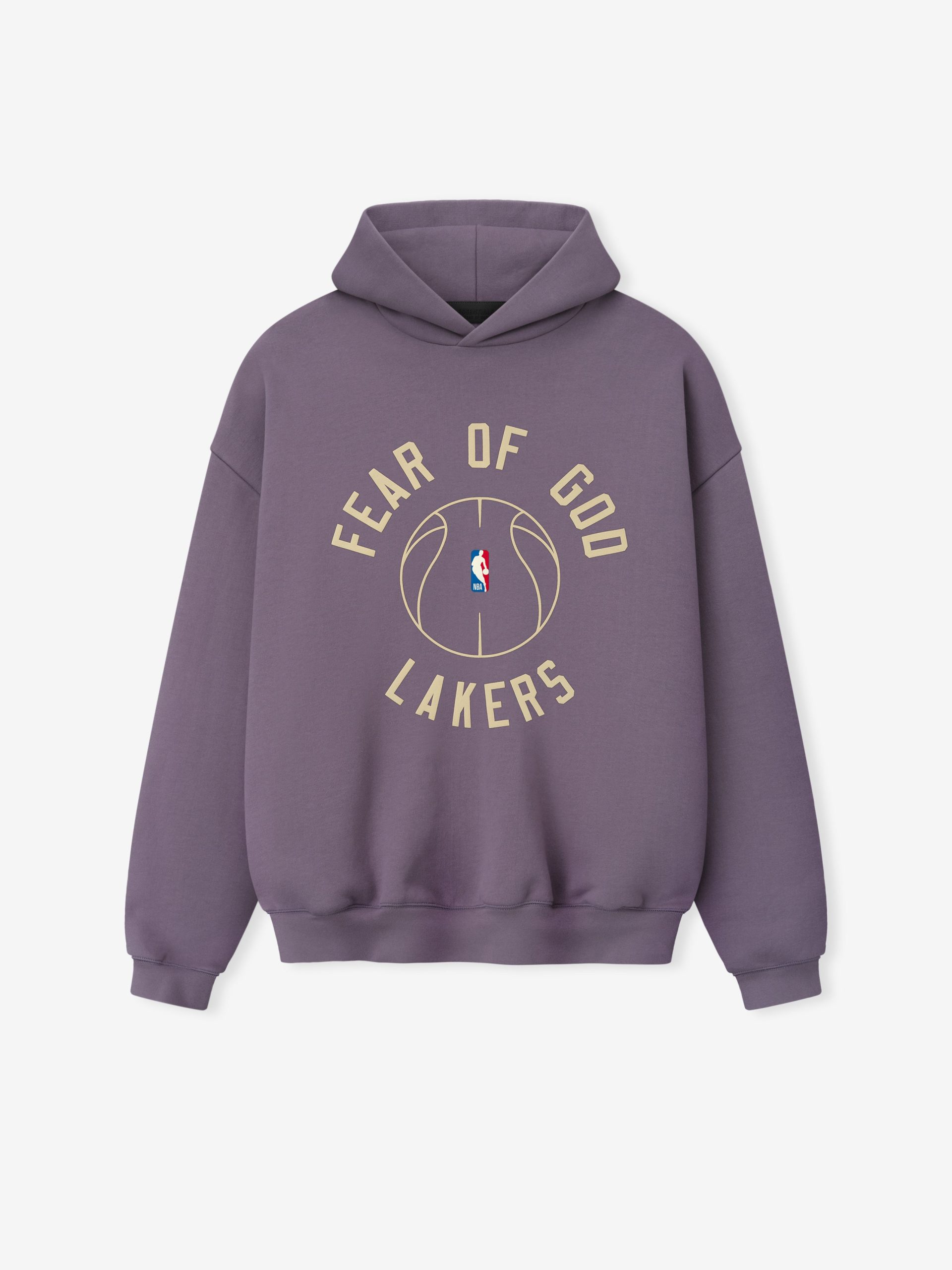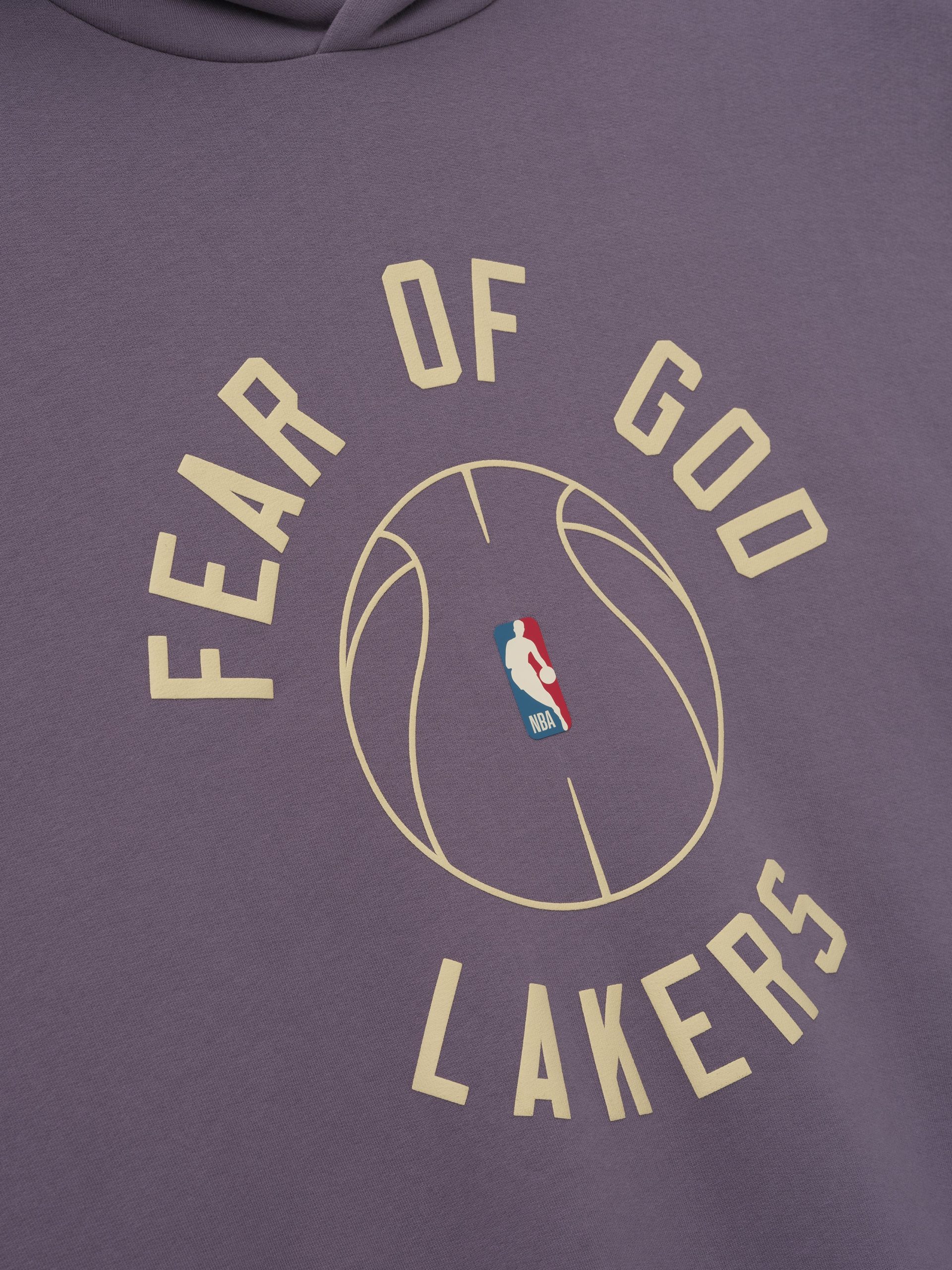 The Lakers x Barkley Hendricks 90s Hoodie is crafted from 520GSM heavyweight cotton fleece and designed in a relaxed. 90s-inspired silhouette. The front features a puff-printed FEAR OF GOD LAKERS graphic paired with the official NBA logo. while the back showcases Barkley Hendricks’ iconic Basketball Series artwork rendered in a 3D print that captures the texture and emotion of his brushstrokes. Finishing details include side pockets. rib-knit cuffs and waist hem. and a Fear of God Essentials label on the hood.