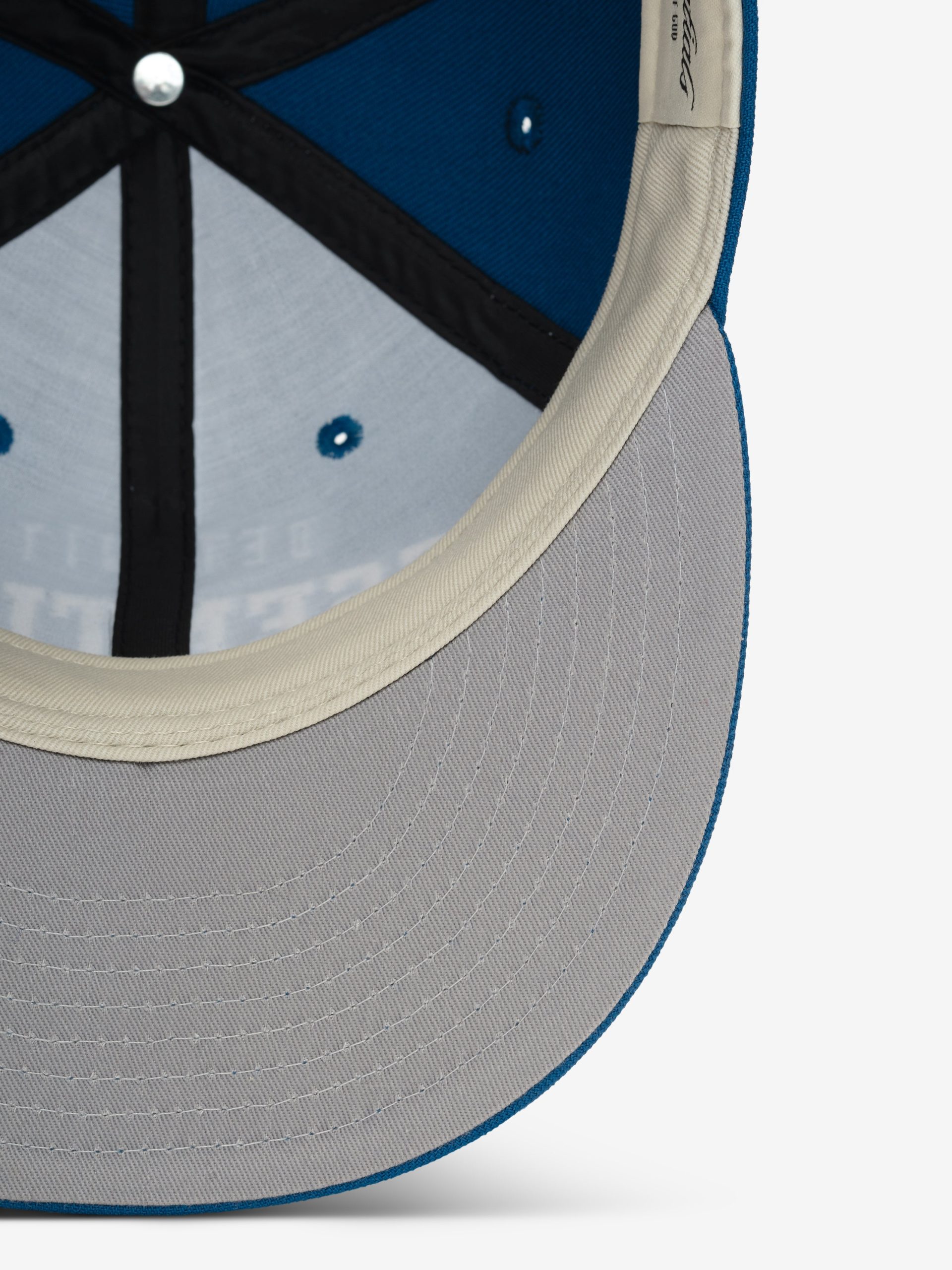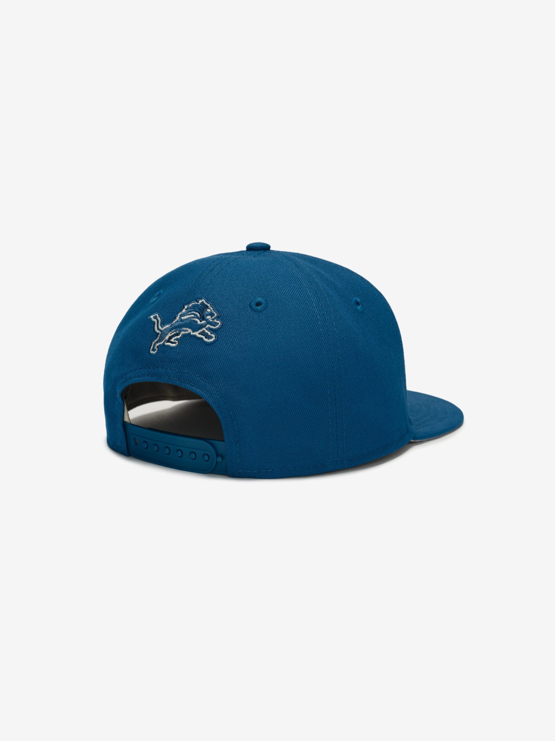 The Fear of God Essentials Lions 9Fifty RC Snapback Cap features a Detroit Essentials lockup. complemented by the official Detroit Lions logo at the back. The 9Fifty RC or Retro Crown is designed for a more vintage. casual feel. Additional features include an embroidered New Era logo on the side and an adjustable snapback closure at the rear.