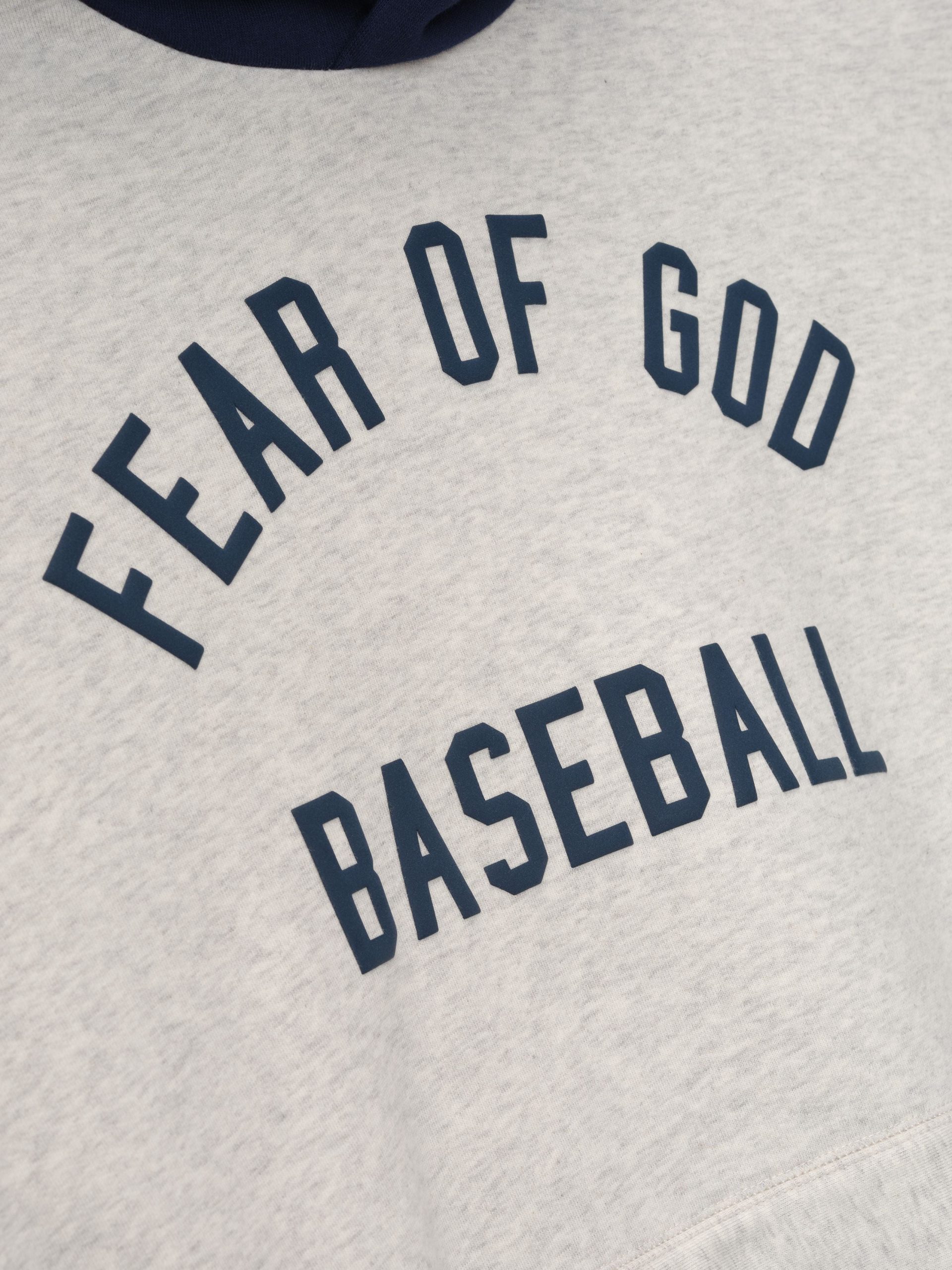 The MLB Sport Hoodie is crafted from core fleece. offering an elevated balance of softness. structure. and lasting comfort. Cut in a relaxed sport fit. it drapes with more ease through the body and extended length compared to the Essentials classic silhouette. The front features a bold puffer-print graphic reading Fear of God Baseball while the back is finished with a MLB Essentials lockup. Additional features include a contrasting double-layered hood. kangaroo pocket. rib-knit at the cuffs and waist hem. The signature rubberized Fear of God Essentials label accents the hood.