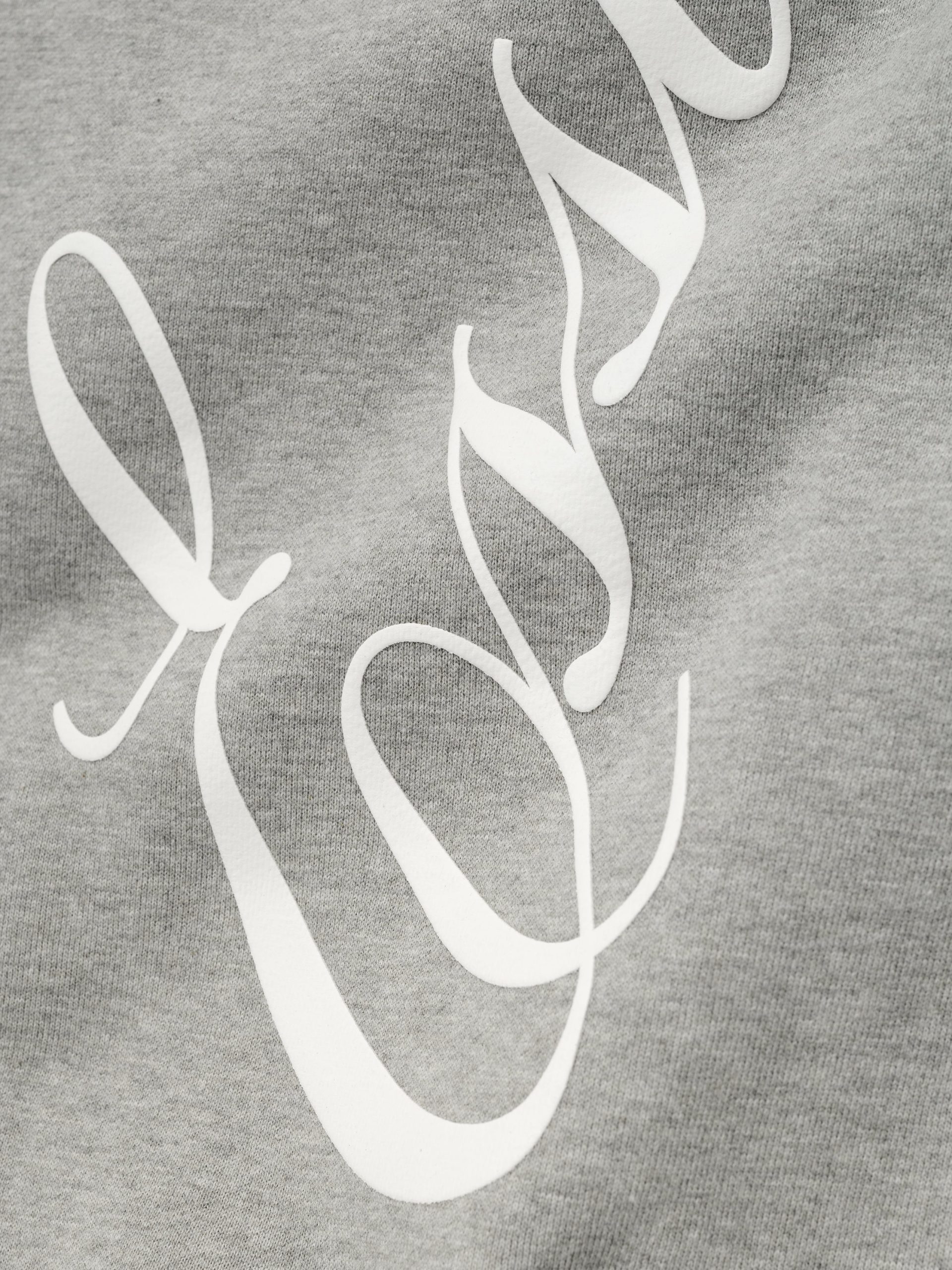The NBA Flare Sweatpant is crafted from 480gsm heavy core fleece. offering both structure and body to its relaxed. flared-leg silhouette. One leg features a bold ESSENTIALS script print lockup. while the NBA emblem accents the other. Finishing details include an encased elastic waistband with elongated drawcords. side seam pockets. and a Fear of God Essentials rubberized label stitched at the center front.
