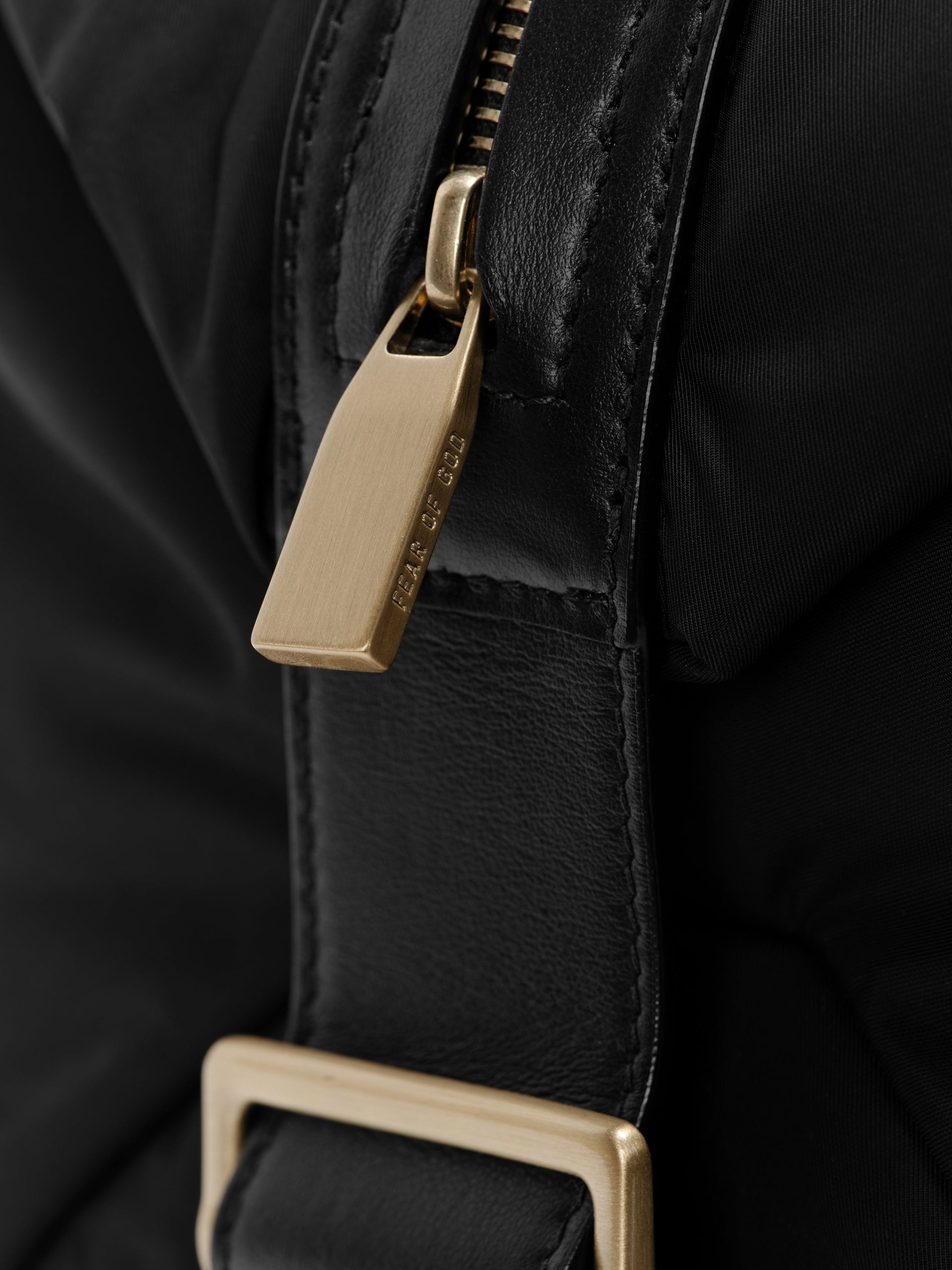 The Belted Duffle is made in Italy from 100% nylon with a debossed Fear of God logo at the center front. The side leather straps with antique brass buckle hardware offers adjustable sizing. while shoulder straps provide everyday functionality.