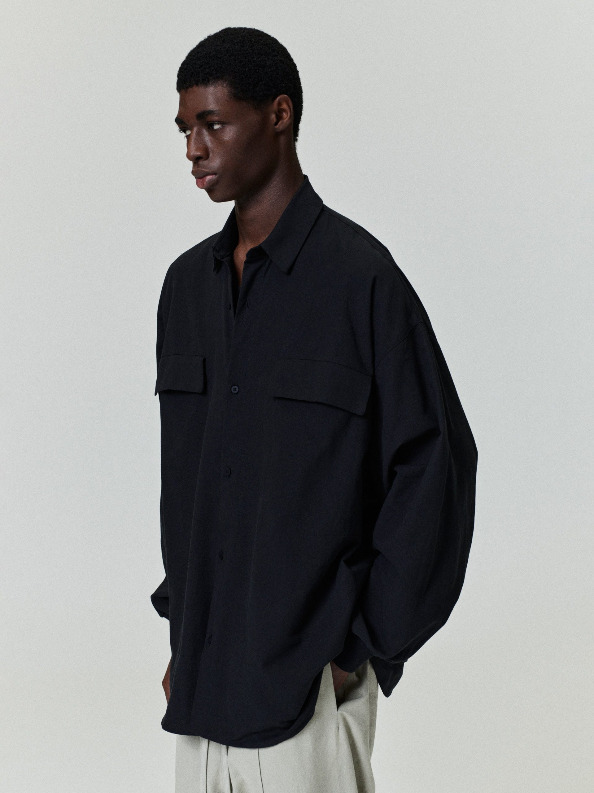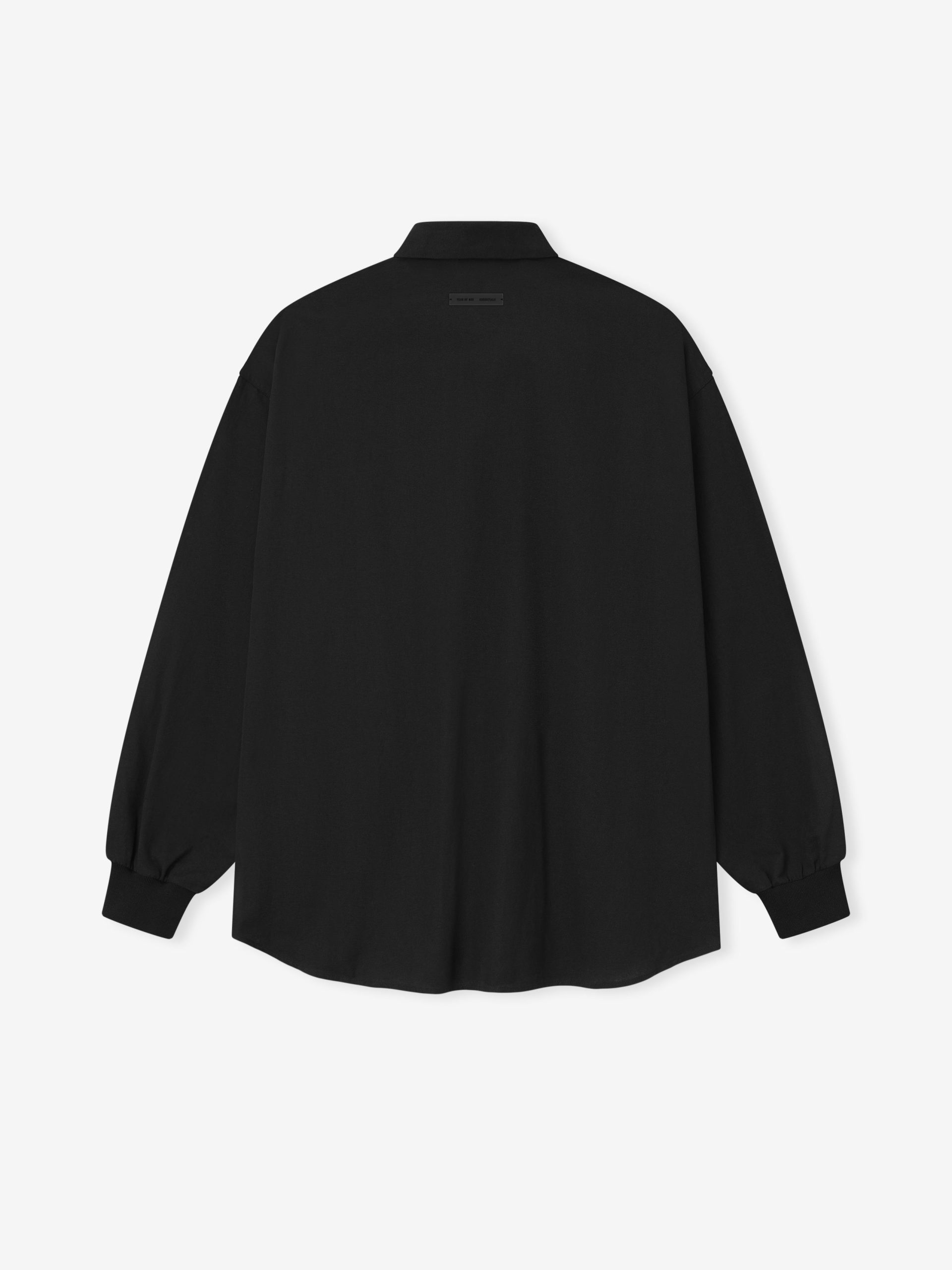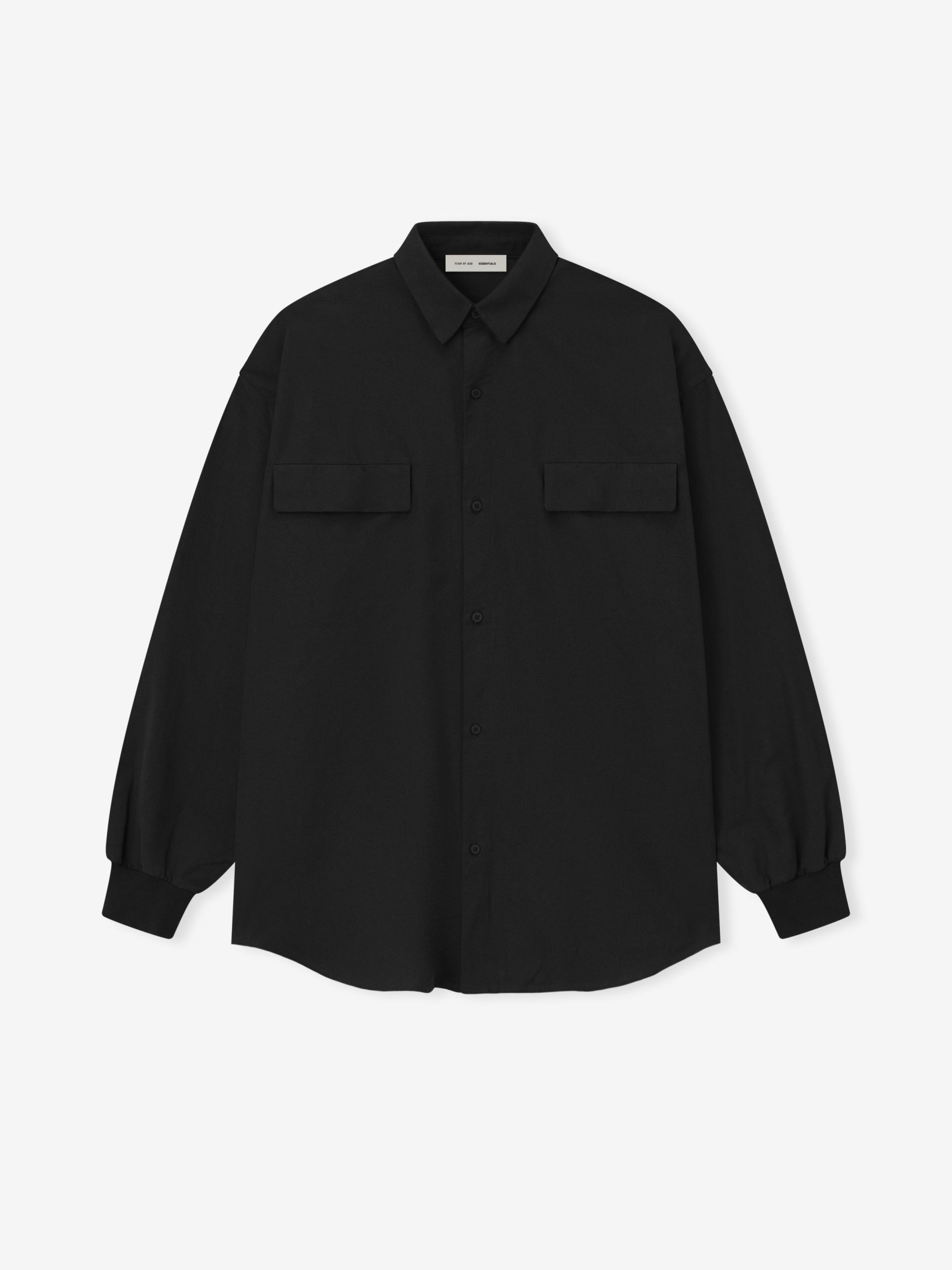 The Oxford Shirt is crafted from 100% cotton Oxford cloth for lightweight. breathable comfort. The oversized fit in the body allows the piece to be worn as a shirt or layered as a jacket. Additional details include a shirt collar. full front button placket. flap pockets. rib-knit cuffs. and contoured hemline. Additionally. there is a Fear of God Essentials rubberized label positioned at the back collar.