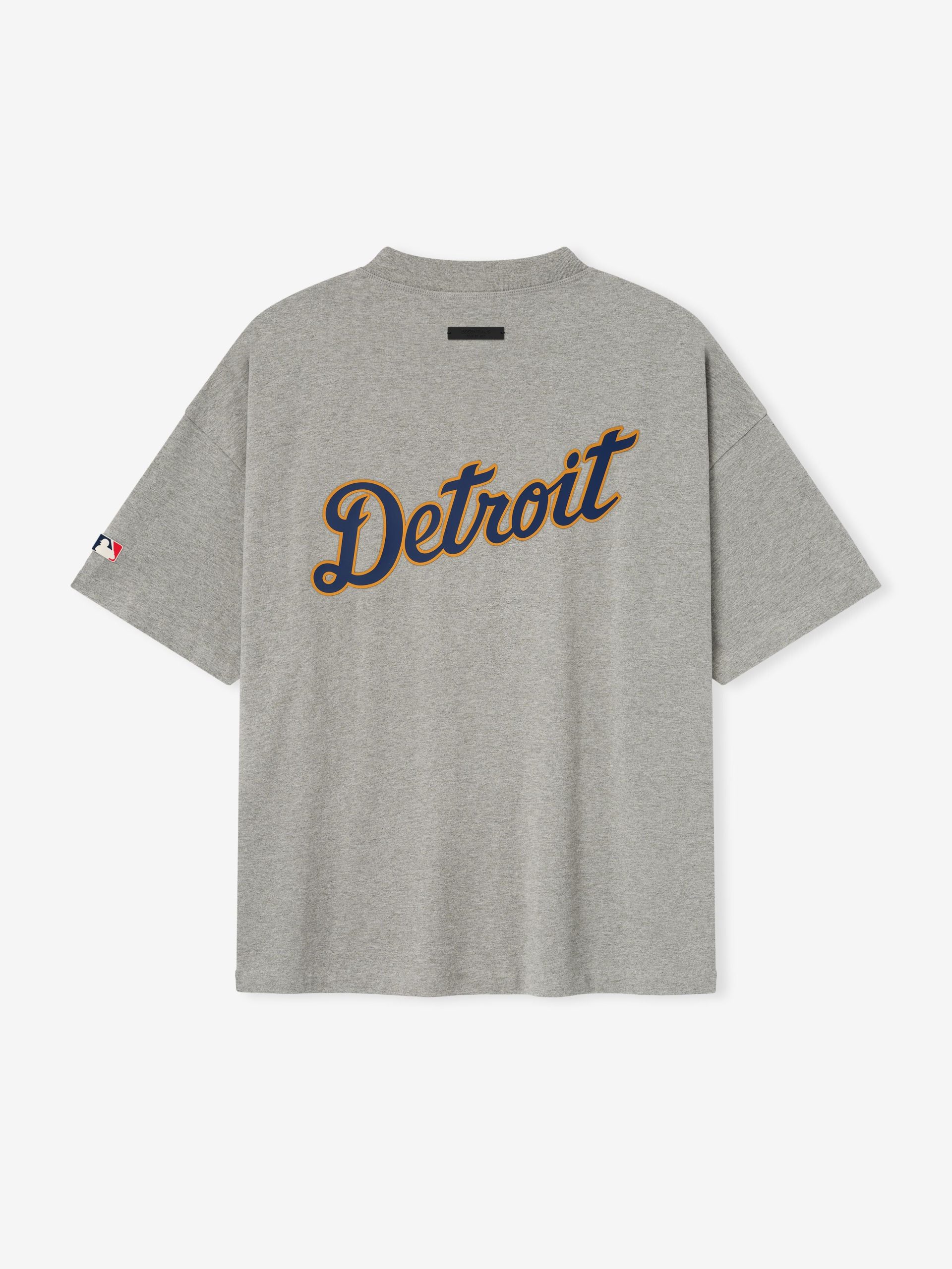 The Tigers 90s Tee is cut from 100% cotton jersey. offering a soft yet substantial hand feel. Designed in an oversized 90s-inspired silhouette. it features exaggerated proportions with dropped shoulders for a relaxed drape. The front is defined by a bold puffer-print application of the Fear of God Tigers lockup. alongside the MLB insignia on the sleeve. Across the back. an official Detroit logo anchors the piece with the signature rubberized Fear of God Essentials label at the collar.