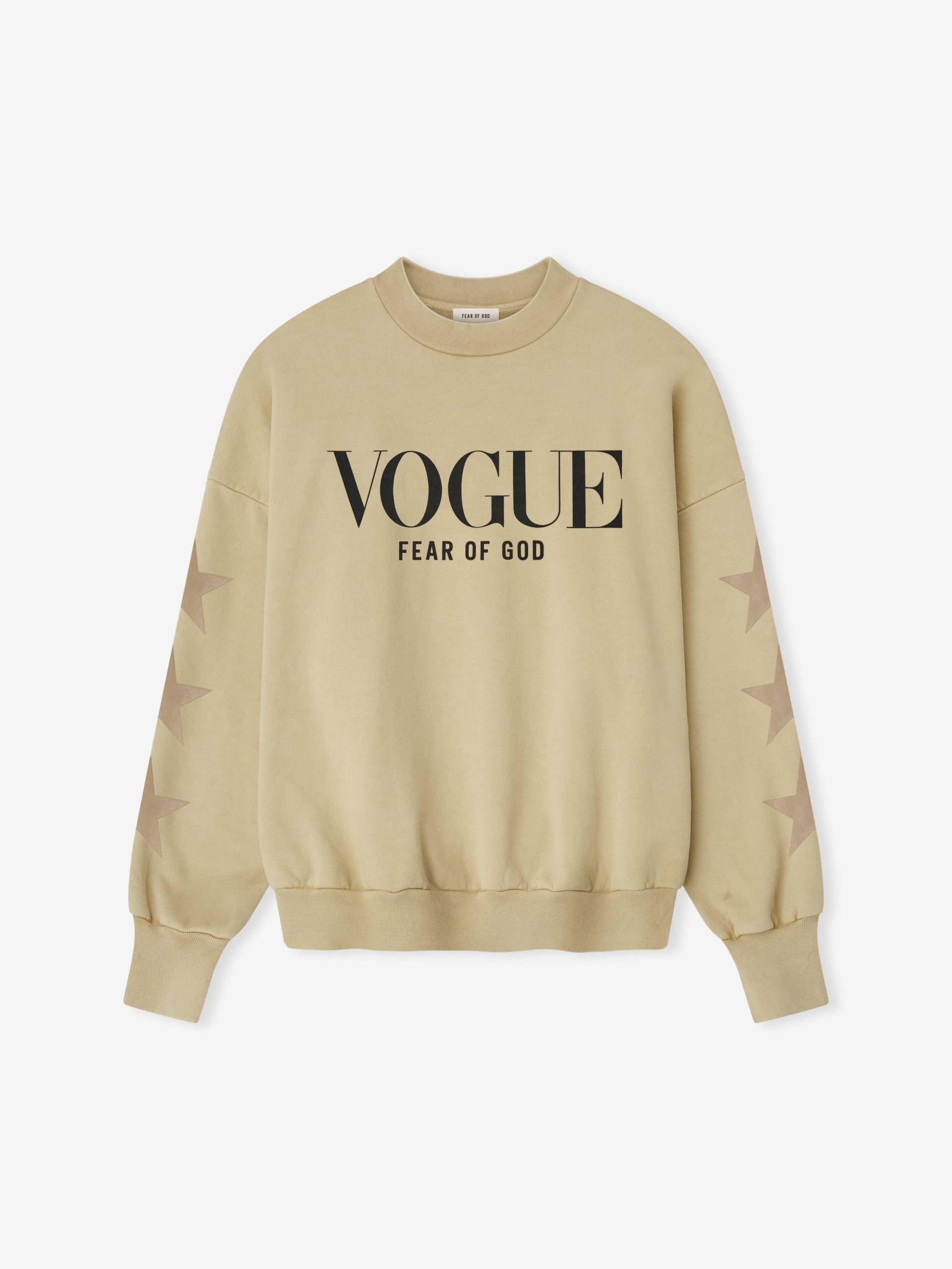 The Vogue Fear of God Neighborhood Crewneck is crafted in the USA from 100% heavyweight cotton fleece and features a sunfade wash with hand-distressing for an authentic vintage appearance. Hand-printed graphics feature the Vogue Fear of God lockup across the chest. while the neighborhoods of Los Angeles are celebrated on the back—a nod to the city’s cultural landscape. The piece is framed by rib knit crewneck. cuffs. waist hem. and Fear of God label at the back collar.