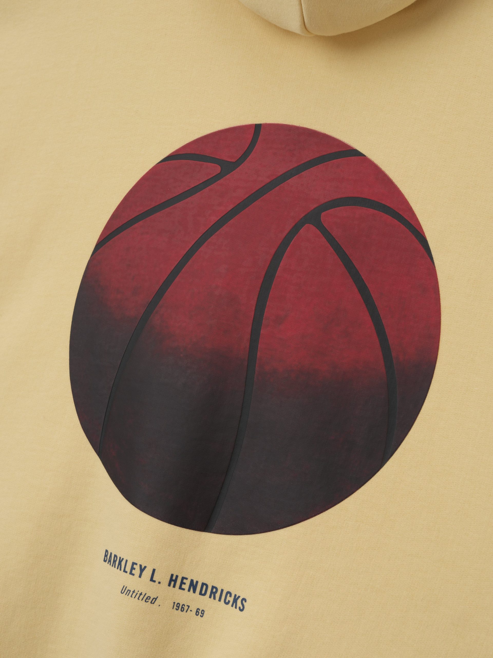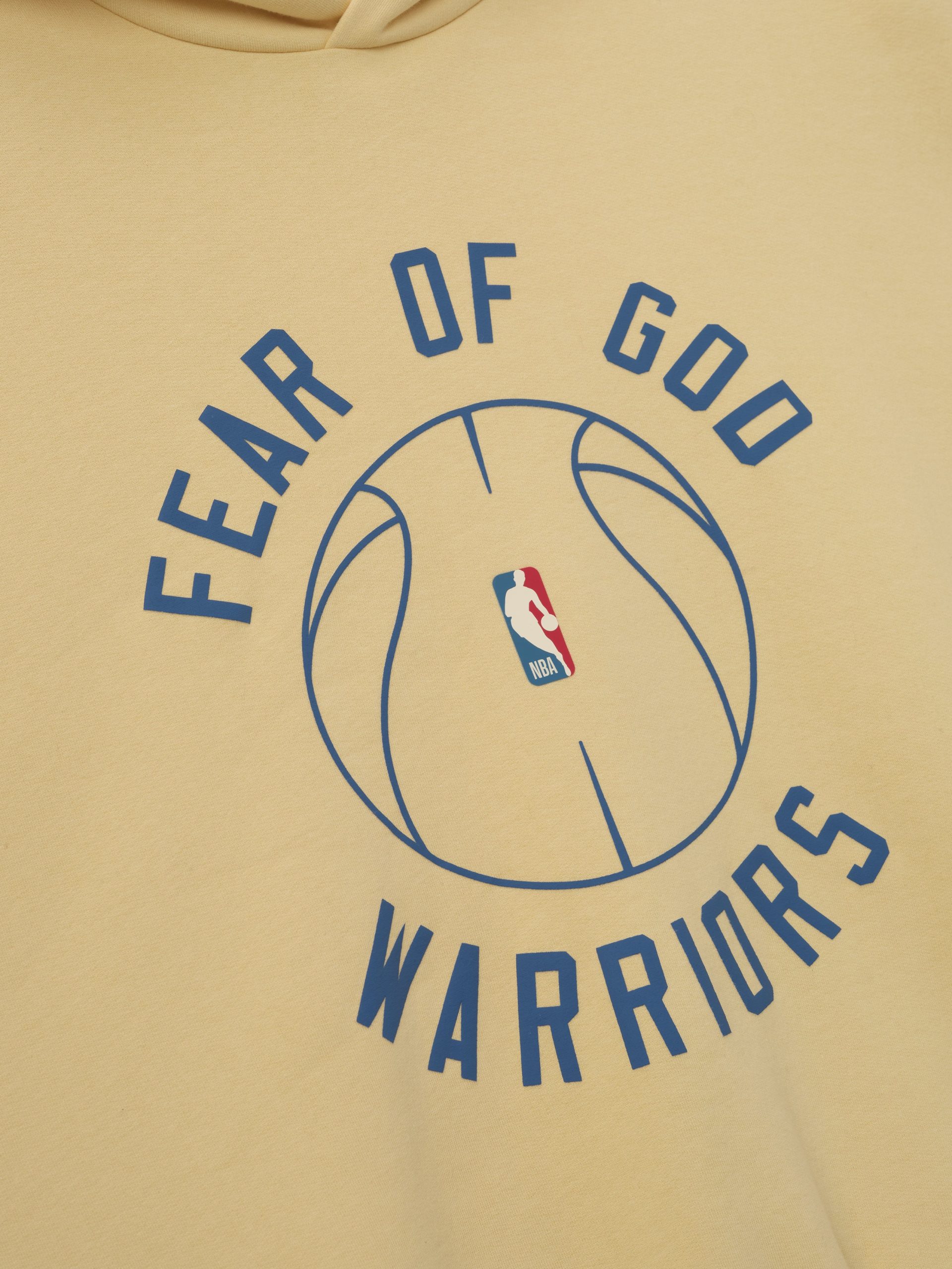 The Warriors x Barkley Hendricks 90s Hoodie is crafted from 520GSM heavyweight cotton fleece and designed in a relaxed. 90s-inspired silhouette. The front features a puff-printed FEAR OF GOD WARRIORS graphic paired with the official NBA logo. while the back showcases Barkley Hendricks’ iconic Basketball Series artwork rendered in a 3D print that captures the texture and emotion of his brushstrokes. Finishing details include side pockets. rib-knit cuffs and waist hem. and a Fear of God Essentials label on the hood.