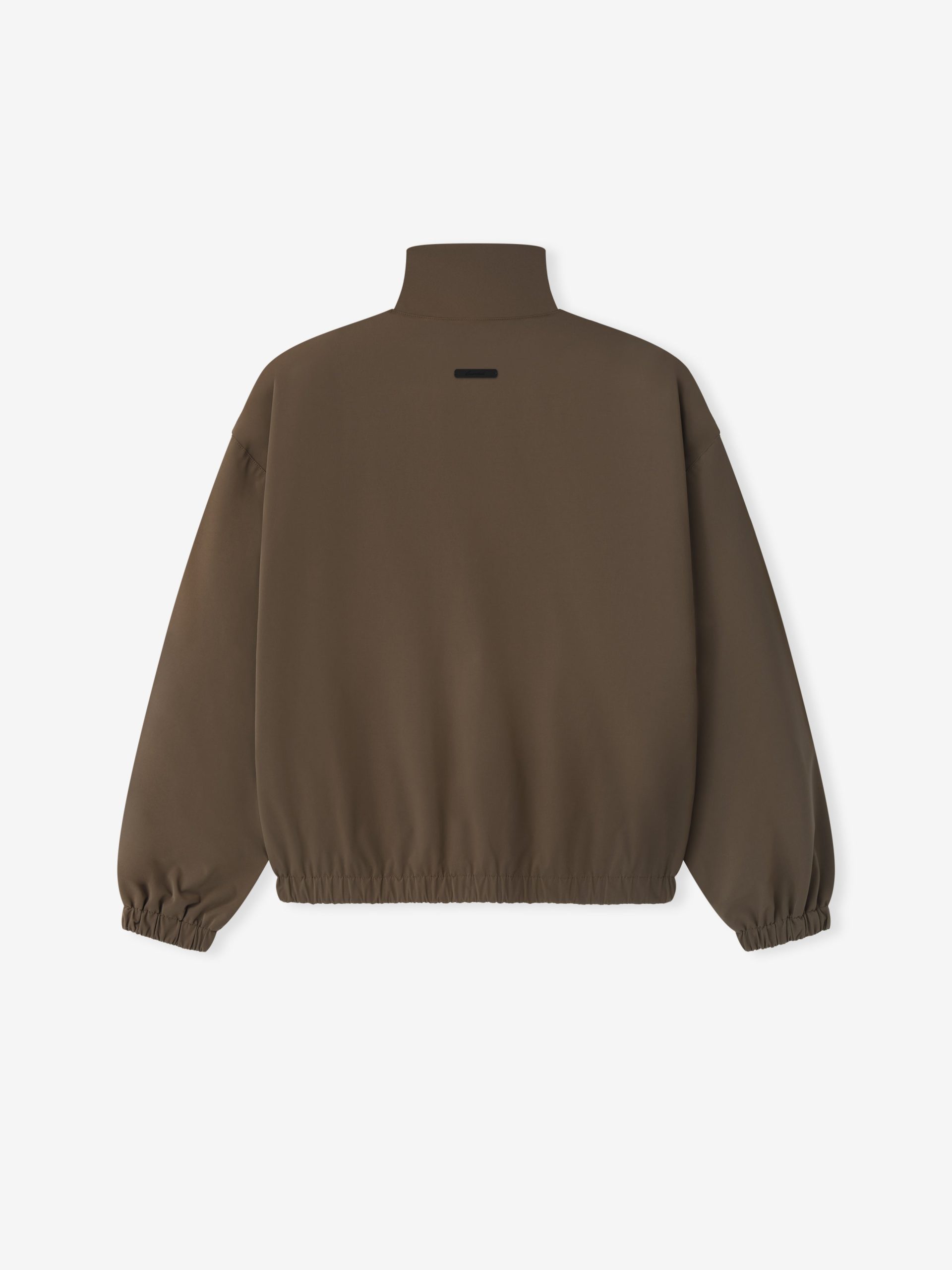 The Womens Active Trace Full Zip Track Jacket is crafted from a sportswear fabric with stretch comfort and perforated lining for breathability. The piece is detailed with an 3M embroidered Essentials active trace logo on the sleeves to enhance its relaxed. rounded silhouette. Additional details include a high neck. full zip front. elasticized cuffs and waist hem. An Essentials signature label is at the back collar.