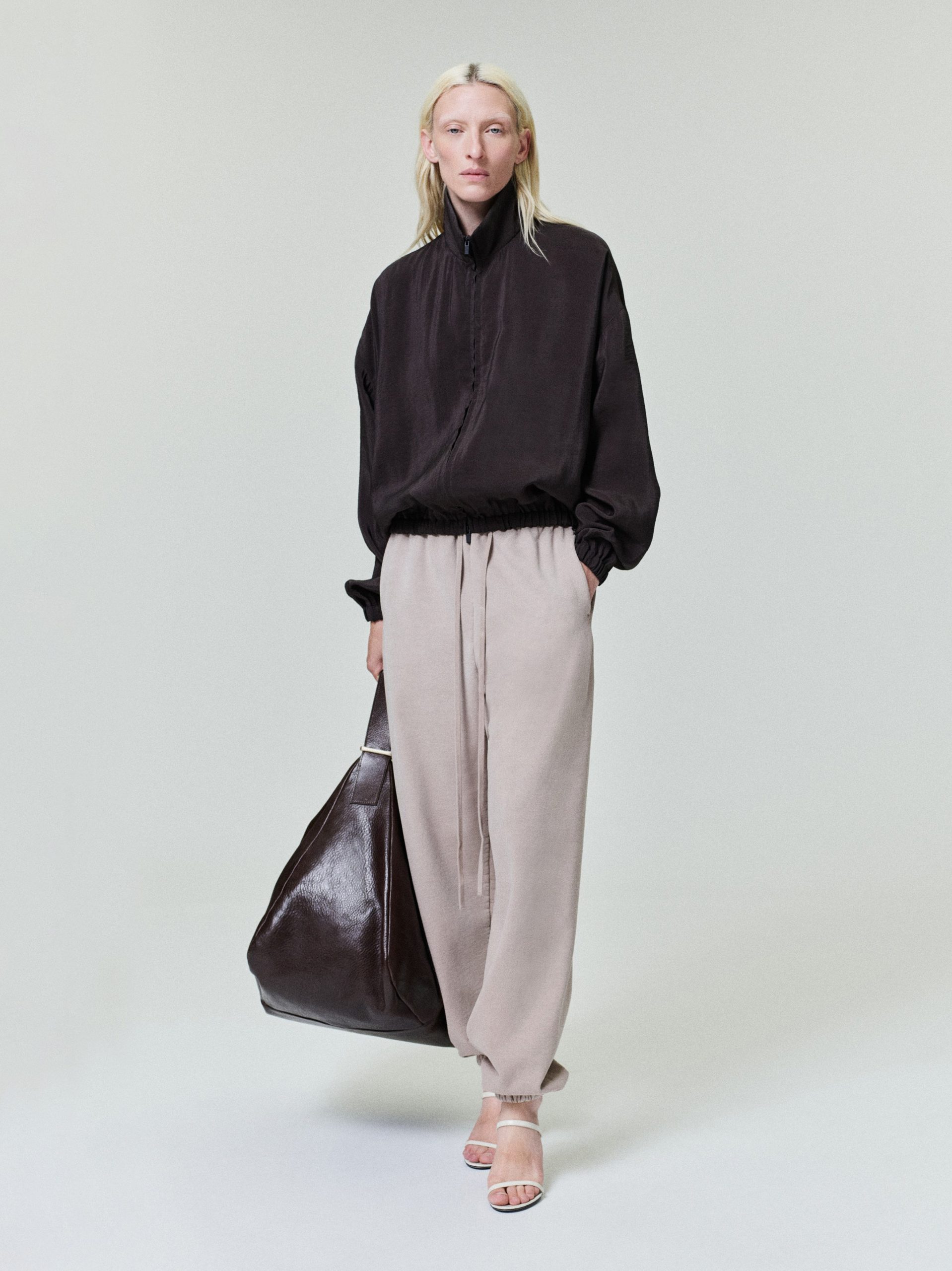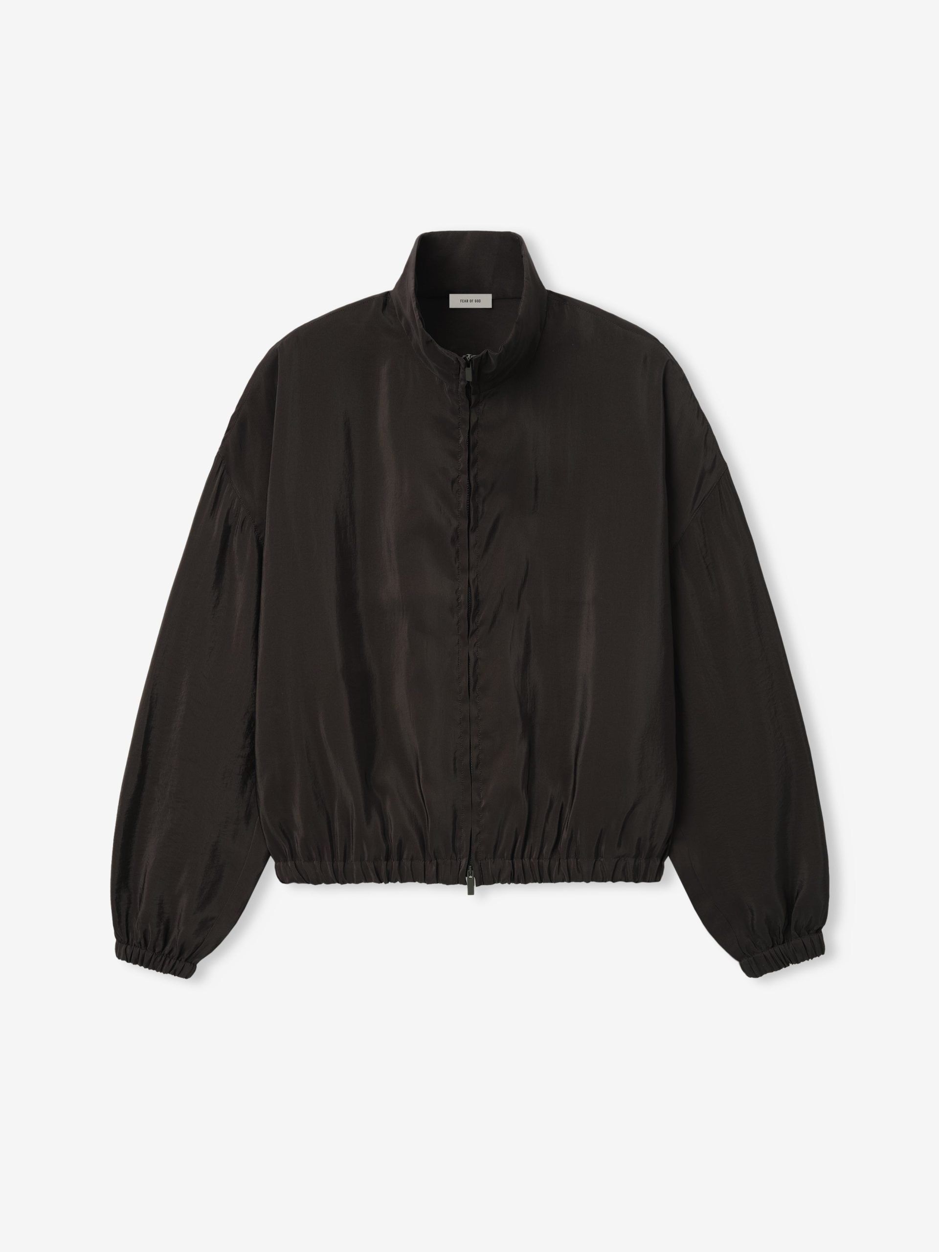 The Women’s Track Jacket is crafted in Italy from lightweight technical crinkle viscose. The track jacket features a stand collar. full zip front. elasticated cuffs and waist hem. The piece is finished with the iconic Fear of God four-stitch label at the center back.