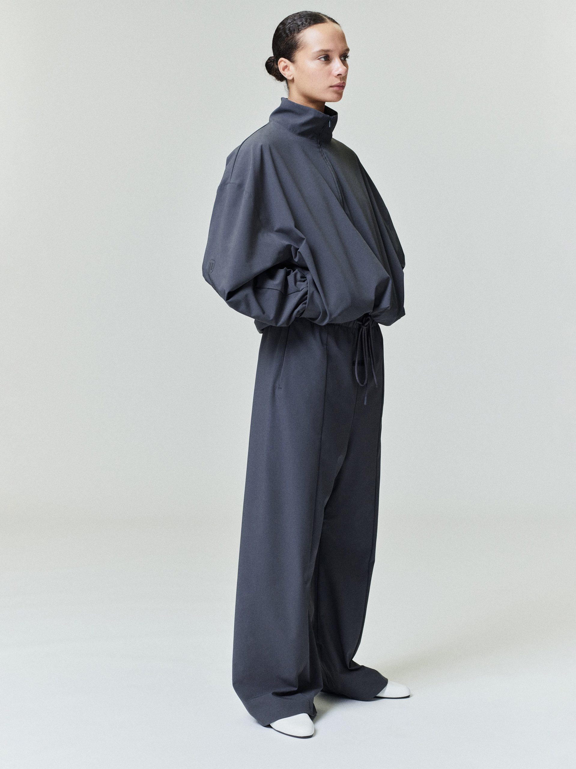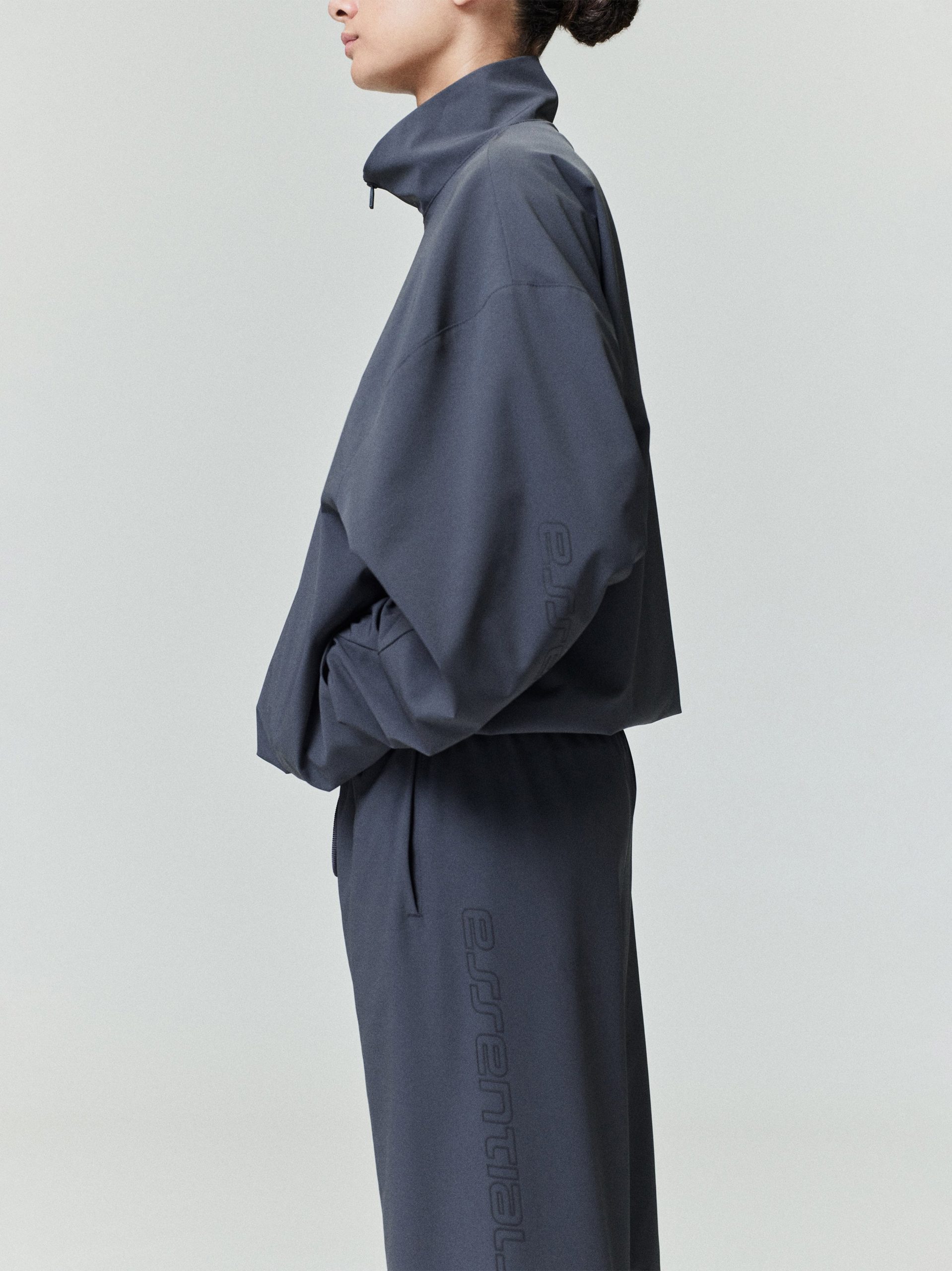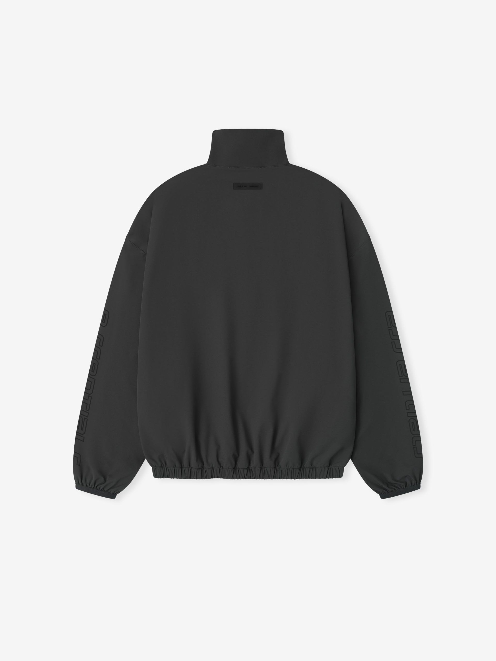 The Women’s Half Zip Track Jacket is crafted from nylon-spandex offering both stretch comfort and water repellant functionality. The piece is detailed with an metallic 3M-printed Essentials graphic on the sleeves to enhance its relaxed. rounded silhouette. Additional details include a high neck. half-zip front. elasticized cuffs and waist hem. A Fear of God Essentials rubberized label stitched at the back.