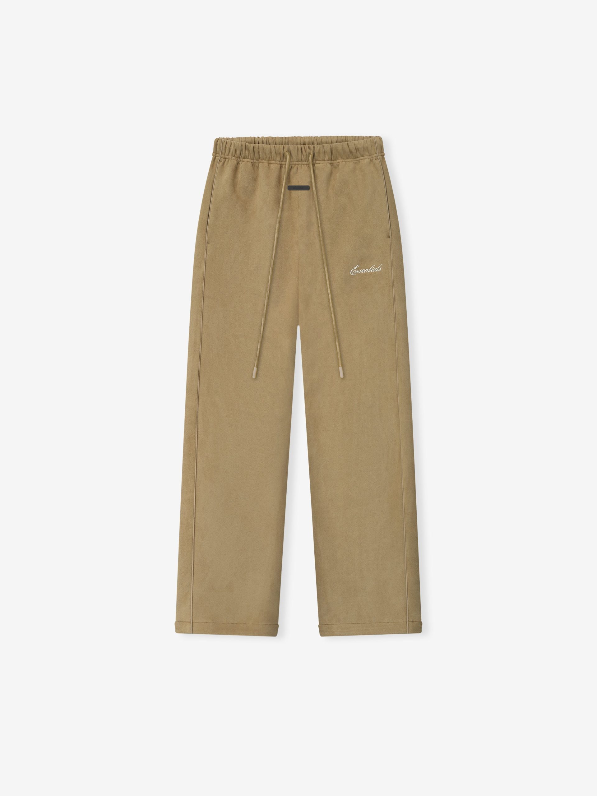 The Women’s Signature Relaxed Sweatpant with Piping is made from suede fleece. offering a plush. suede-like hand feel. sportswear piping detail. The piece is designed with a relaxed straight leg fit for ideal comfort. The embroidered Essentials signature logo is branded on the leg. while an Essentials signature label is situated at the center front. Key features include sportswear piping. side pockets. ankle bungee with toggle. and an encased elastic waistband with drawstrings for added comfort.