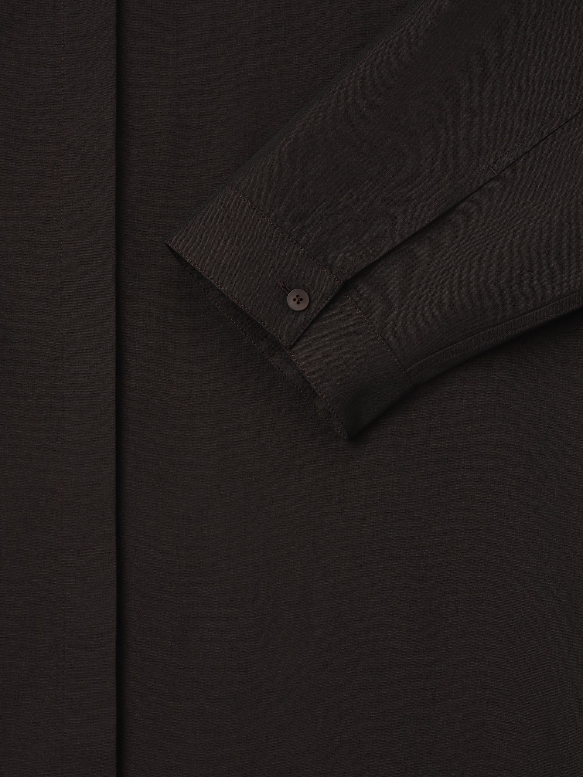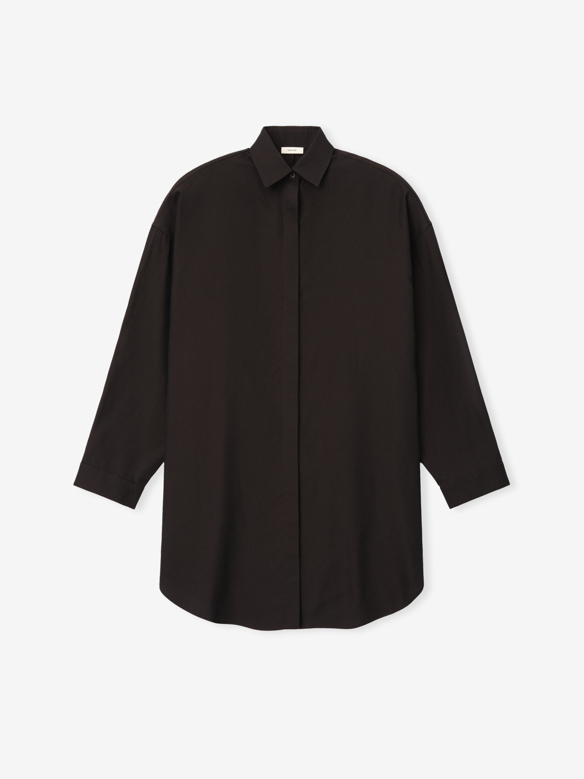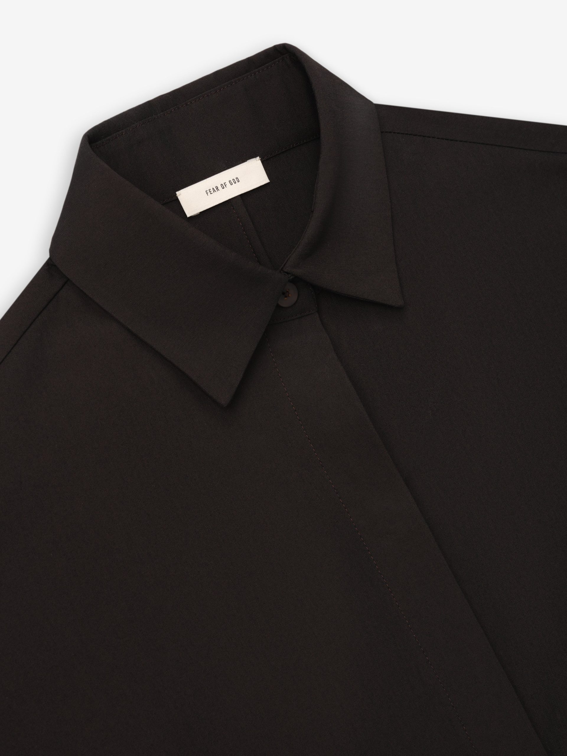 The Women’s Relaxed Shirt is crafted in Italy from viscose oxford with a dry drape quality. The relaxed fit shirt features a hidden button front placket. small cuffs. center back seam. and curved shirt tail. The iconic 4-stitch Fear of God label is on center back.