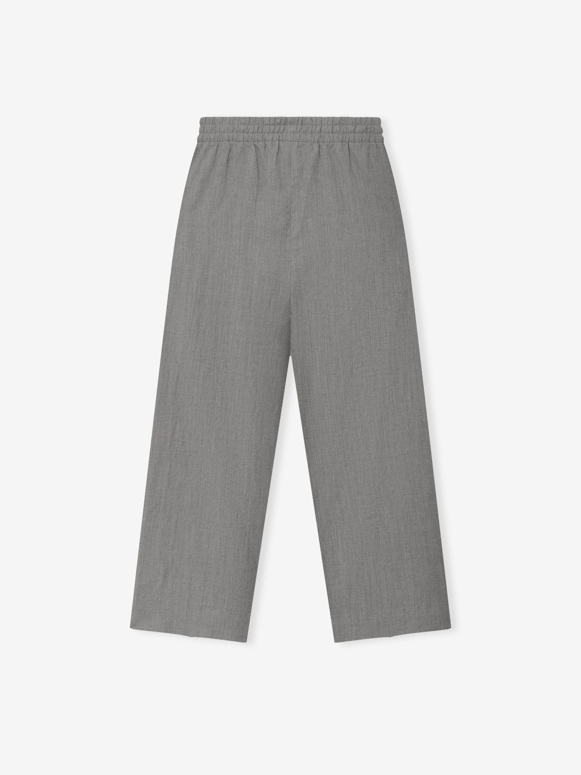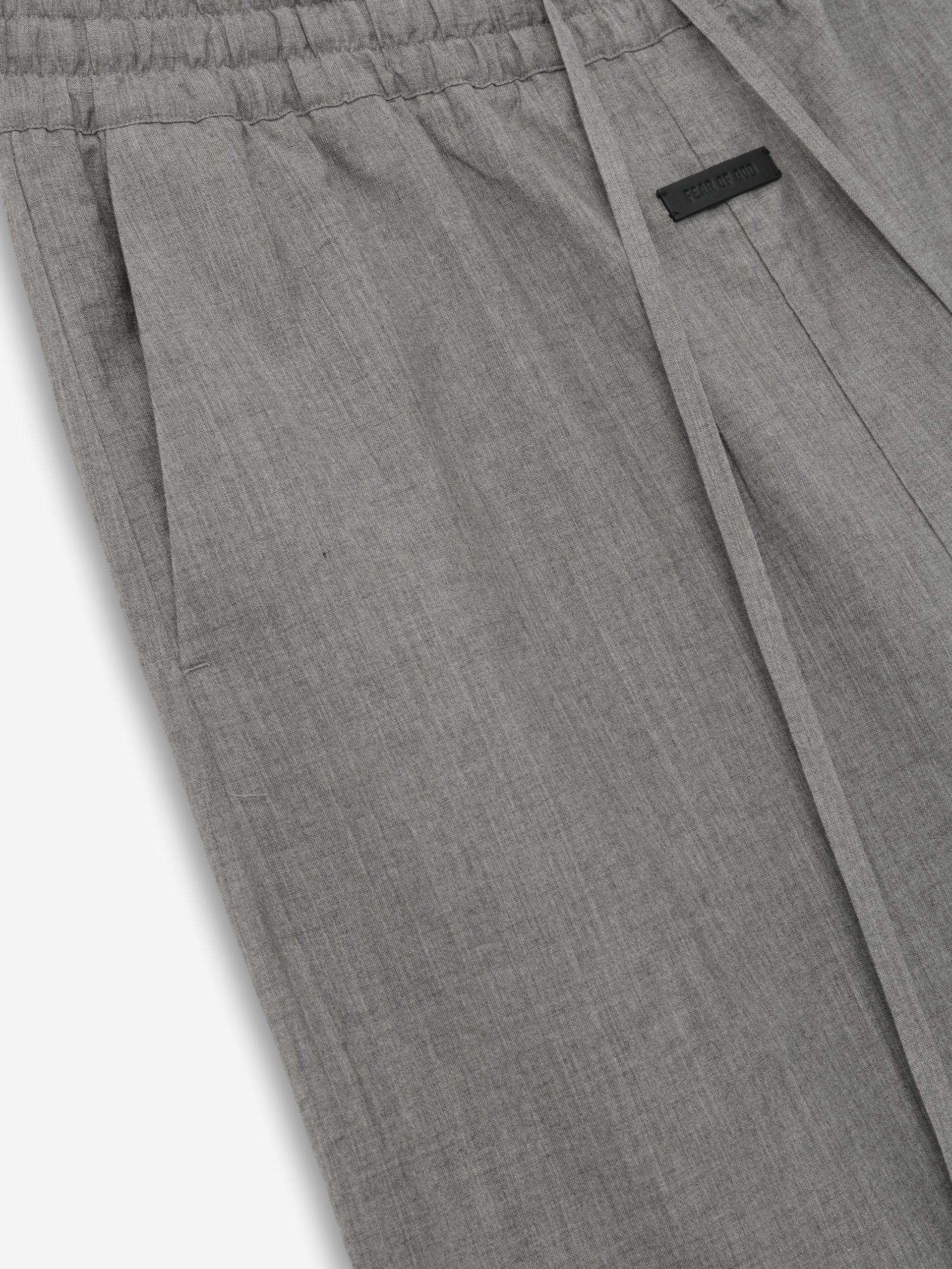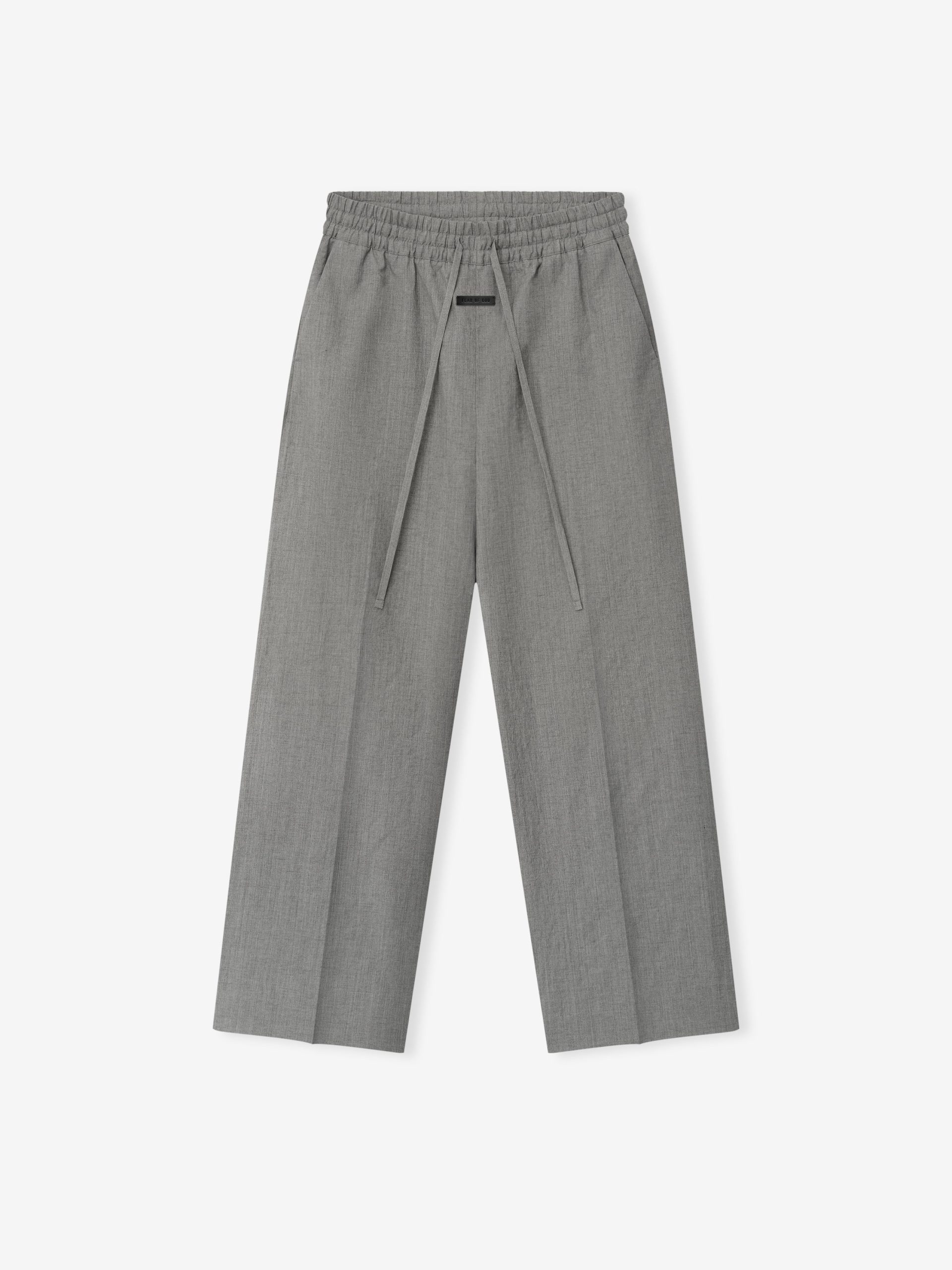 The Wide Leg Drawstring Pant is crafted in Italy from a washed virgin wool linen lightweight canvas. Designed with a wide-leg silhouette. the pant features an elasticated waistband with an adjustable drawstring and slant pockets for ease. The piece is finished with the iconic Fear of God four-stitch label at the center front.