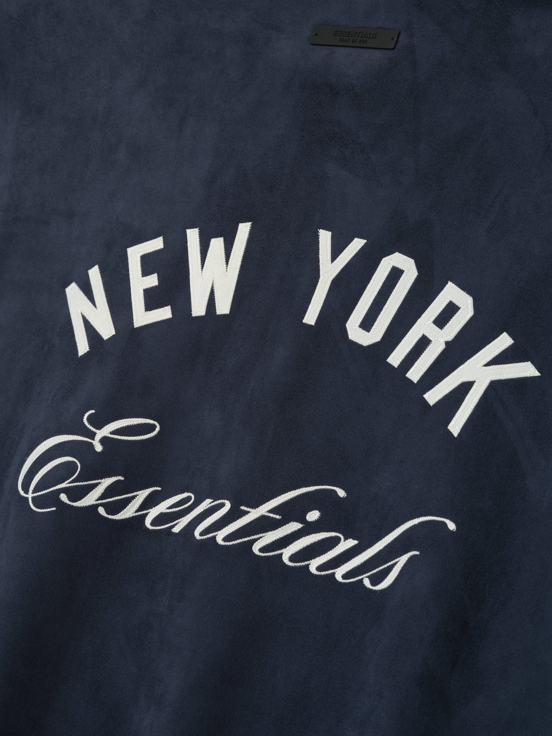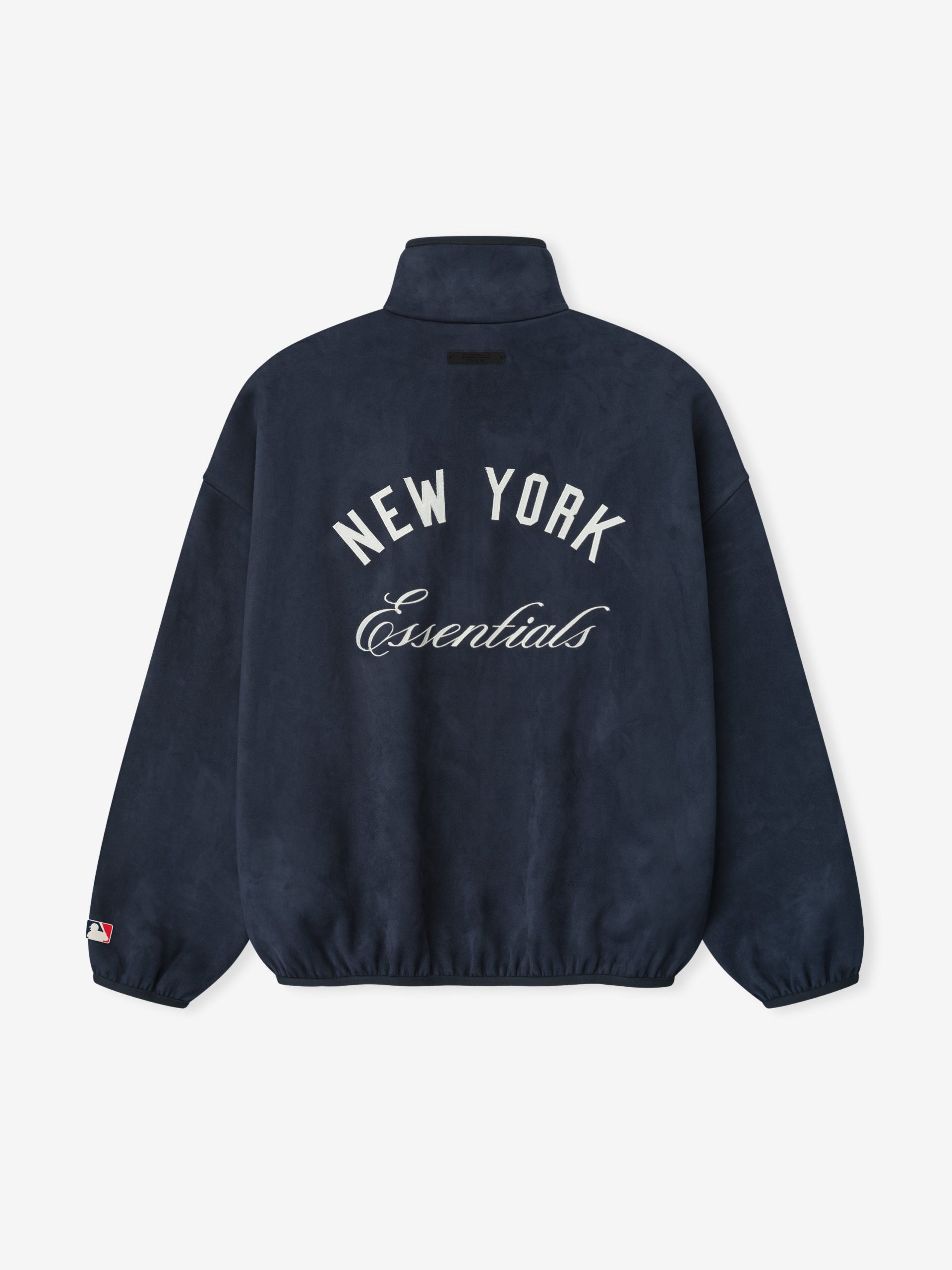 The Yankees Modern Half Zip is crafted from suede fleece. offering a plush. suede-like hand feel that enhances its vintage-inspired style. Designed in a relaxed Sport fit with satin-stitch branding. the front features the iconic New York Yankees logo. while the back showcases a New York Essentials script lockup. Additional details include the MLB logo on the sleeve. side pockets. and elastic binding at the hemlines. The look is finished with the signature Fear of God Essentials label at the back collar.